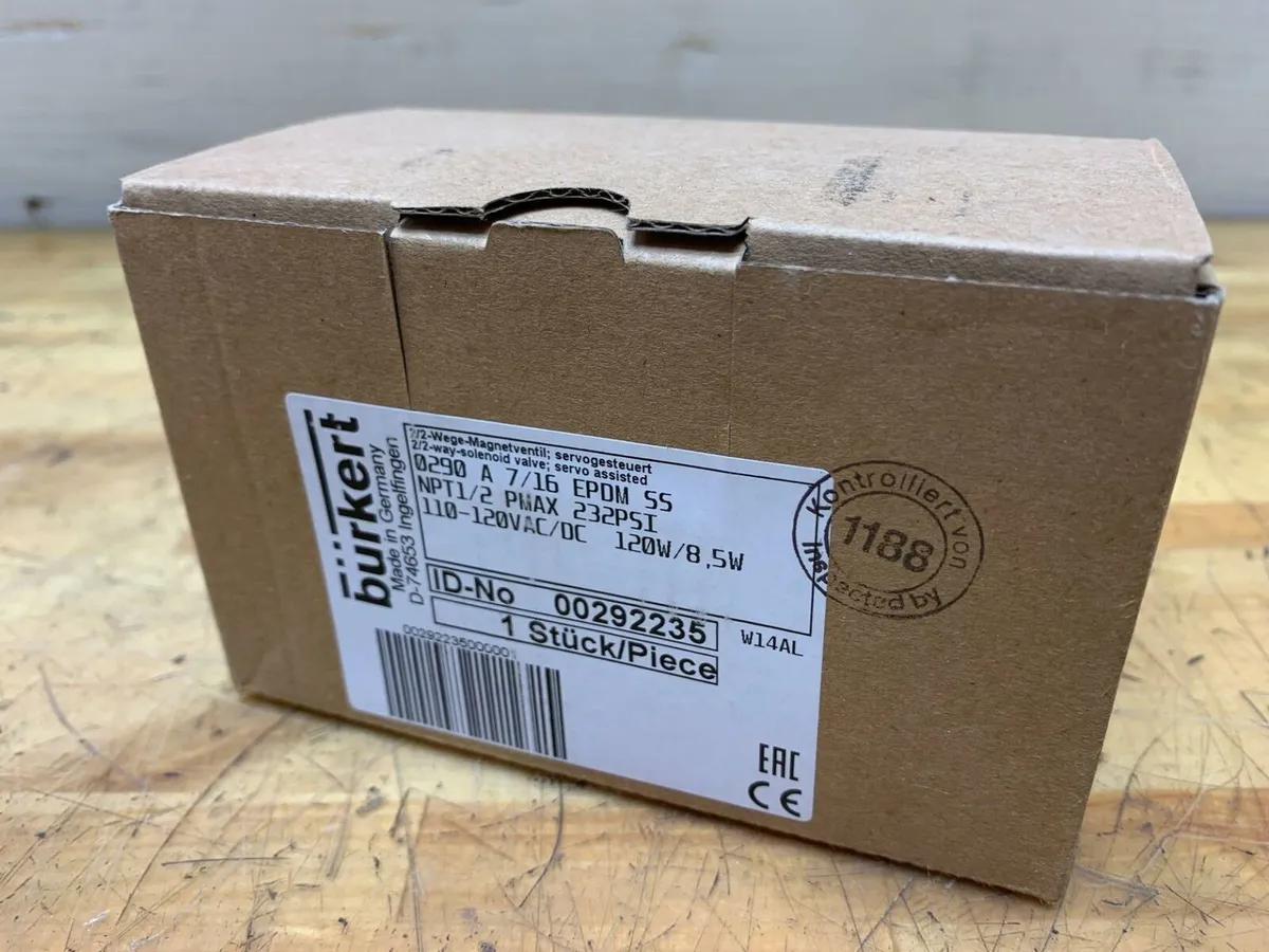 UNUSED Burkert 0290 2/2 Way-Solenoid Valve, 7/16, EPDM SS, NPT1/2 PMAX UNUSED Burkert 0290 2/2 Way-Solenoid Valve, 7/16, EPDM SS, NPT1/2 PMAX Click images to enlarge Description INV 2791 This is fresh surplus from a Fortune 500 company. We have over 15 available in stock, this lot is for (1) valve Burkert D-74653 ID-No 00292235 2/2 Way-Solenoid Valve 0290 7/16 EPDM SS NPT1/2 PMAX 110-120 VAC/DC 120W/8,5W MATL NO.: 3080669 Rotomat 40 Thanks for Looking! I have a regular business selling used equipment. This item is also for sale outside of eBay therefore my listing will often end without notice. If you're interested please bid or make an offer promptly to avoid losing out. Buy with confidence. There is a 14 day return privilege if the item arrives not as described or non-functional unless otherwise stated in the description. Buyer must notify us within 14 days of items arrival. This is not a satisfaction guarantee, I will only honor a return if we miss-listed the items or it does not function properly. I try to take REALLY good photos so you know what you are bidding on. We want you to feel comfortable buying from us. If you have any questions please let us know. Images sell!Get Supersized Images & Free Image HostingCreate your brand with Auctiva'sCustomizable Templates.Attention Sellers - Get TemplatesImage Hosting, Scheduling at Auctiva.com.