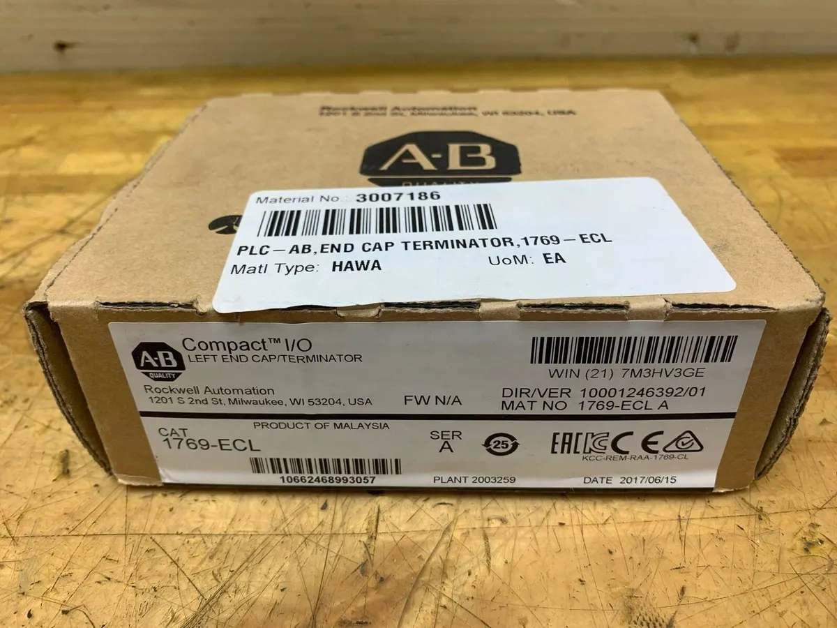 Factory Sealed Allen-Bradley Compact I/O Left End Cap/Terminator CAT:1769-ECL Factory Sealed Allen-Bradley Compact I/O Left End Cap/Terminator CAT:1769-ECL Click images to enlarge Description INV 2210 This is NEW surplus from a Fortune 500 company. Purchased for equipment that was never built. Brand New In Box. Ready. Set. Save! Factory Sealed A-B Compact I/O Left End Cap/Terminator CAT:1769-ECL SER A Rockwell Automation Thanks for Looking! I have a regular business selling used equipment. This item is also for sale outside of eBay therefore my listing will often end without notice. If you're interested please bid or make an offer promptly to avoid losing out. Buy with confidence. There is a 14 day return privilege if the item arrives not as described or non-functional unless otherwise stated in the description. Buyer must notify us within 14 days of items arrival. This is not a satisfaction guarantee, I will only honor a return if we miss-listed the items or it does not function properly. I try to take REALLY good photos so you know what you are bidding on. We want you to feel comfortable buying from us. If you have any questions please let us know. Rotomat 44 Get images thatmake Supersized seem small.Showcase your items with Auctiva'sListing Templates!THE simple solution for eBay sellers.