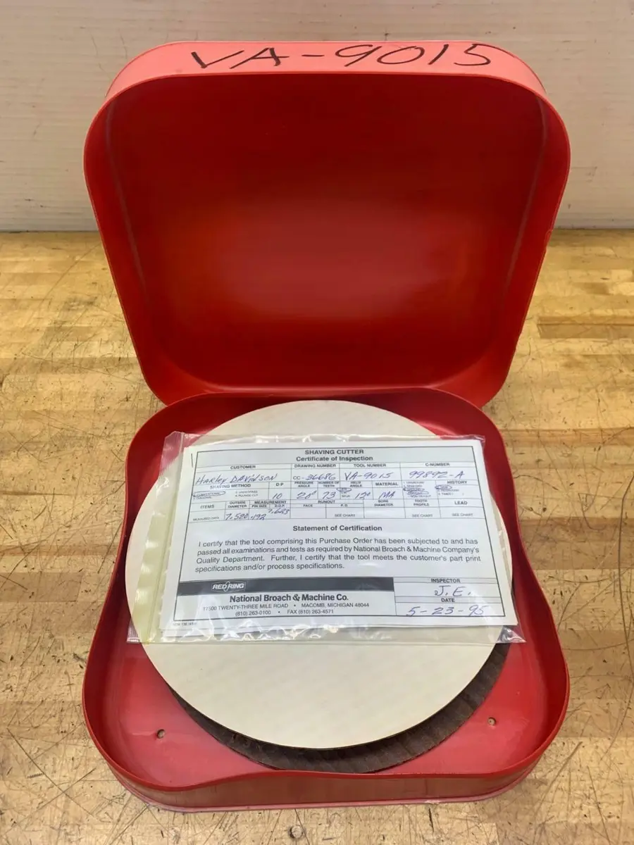 NEW RED RING VA-9015 Gear Shaving Cutter Hob, National Broach & Machine,10P NEW RED RING VA-9015 Gear Shaving Cutter Hob, National Broach & Machine,10P Click images to enlarge Description INV 2996 Marked NEW National Broach Red Ring Gear Hob / Gear Conventional Shaver (5) Used / Reground Available Model: VA-9015 CC-36686 10P 20 P.A. R. H. TL. s/n: C-99892-A 73T Teeth #: 73 Pressure Angle: 200 Brand New C-Number: 99438 Drawing Number: CC-36686 Outside Dia.: 7.502 Pin Size: .192 D.O.P.: 7.609 Blue Rack Thanks for Looking! I have a regular business selling used equipment. This item is also for sale outside of eBay therefore my listing will often end without notice. If you're interested please bid or make an offer promptly to avoid losing out. Buy with confidence. There is a 14 day return privilege if the item arrives not as described or non-functional unless otherwise stated in the description. Buyer must notify us within 14 days of items arrival. This is not a satisfaction guarantee, I will only honor a return if we miss-listed the items or it does not function properly. I try to take REALLY good photos so you know what you are bidding on. We want you to feel comfortable buying from us. If you have any questions please let us know. Pictures sell!Auctiva offers Free Image Hosting and Editing.300+ Listing Templates!Auctiva gets you noticed!The complete eBay Selling Solution.
