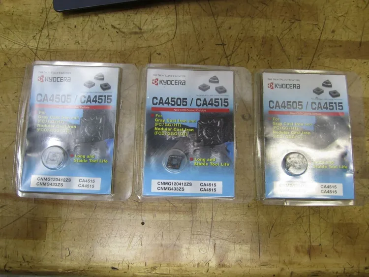 (3) New Sealed Kyocera CA4515 Inserts (3) New Sealed Kyocera CA4515 Inserts Click images to enlarge Description INV 3084 I have a ton of brand new carbide inserts right out of the tool room cabinets. Take a look at all my listings This LOT is for 3 New Sealed Kyocera CA4515 Inserts CNMG120412ZS CNMG433ZS There are (1) of this model available. This lot includes a total of 3 inserts. Bin 37 Thanks for Looking! I have a regular business selling used equipment. This item is also for sale outside of eBay therefore my listing will often end without notice. If you're interested please bid or make an offer promptly to avoid losing out. Buy with confidence. There is a 14 day return privilege if the item arrives not as described or non-functional unless otherwise stated in the description. Buyer must notify us within 14 days of items arrival. This is not a satisfaction guarantee, I will only honor a return if we miss-listed the items or it does not function properly. I try to take REALLY good photos so you know what you are bidding on. We want you to feel comfortable buying from us. If you have any questions please let us know. Pictures sell!Auctiva offers Free Image Hosting and Editing.300+ Listing Templates!Auctiva gets you noticed!The complete eBay Selling Solution.