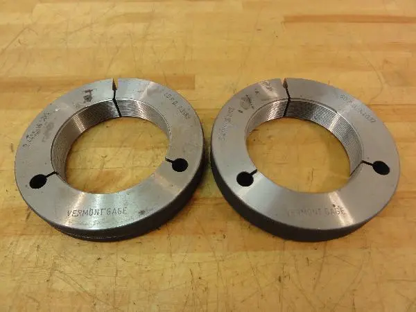 img{max-width:100%} a.imagelink {color:#0000FF;} a:hover.imagelink {color:#0000FF;} a:visited.imagelink {color:#800080;} a.imagelink img.auctionimage { border: 2px solid #0000FF; } a:visited.imagelink img.auctionimage { border: 2px solid #800080; } Inv # 1004 These were removed as surplus from a Fortune 100 company in Minneapolis, MN. Guaranteed to Calibrate or return for a refund. Make: Vermont Gage Size: 3.4455 16 UNS Type: Go & NoGO Thread Ring Gages GO P.D. 3.4032 LO P.D. 3.3989 Color Coded Green/Red Guaranteed to Calibrate or return for a refund. Thanks for Looking! I have a regular business selling used equipment. Buy with confidence. There is a 14 day return privilege if the item arrives not as described or non-functional unless otherwise stated in the description. Buyer must notify us within 14 days of items arrival. This is not a satisfaction guarantee, I will only honor a return if we miss-listed the items or it does not function properly. I try to take REALLY good photos so you know what you are bidding on. We want you to feel comfortable buying from us. If you have any questions please let us know. bin 7 Images sell!Get Supersized Images & Free Image HostingAttention Sellers - Get TemplatesImage Hosting, Scheduling at Auctiva.com.