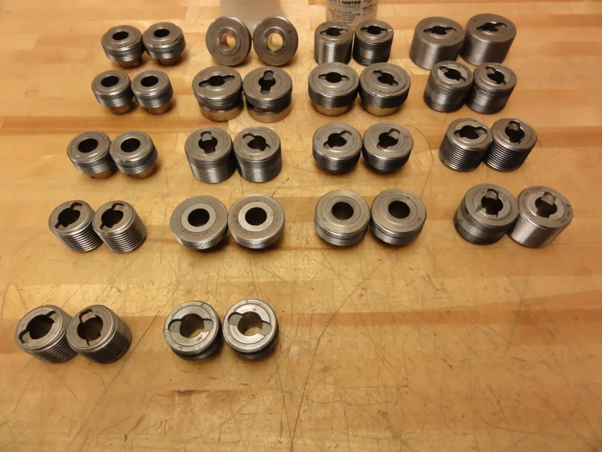 a.imagelink {color:#0000FF;} a:hover.imagelink {color:#0000FF;} a:visited.imagelink {color:#800080;} a.imagelink img.auctionimage { border: 2px solid #0000FF; } a:visited.imagelink img.auctionimage { border: 2px solid #800080; } From a Machine shop that closed in my area I have for sale: (18) Sets of CJ Winter Thread Roller Dies "Size 1415A" to include: (1) 3/8-18 NPTF, Gage .251, W4118V8 (2) 5/8-11, Gage .256, W4111M1 (2) 3/8-18 NPTF, Gage .256, W4118V2 (2) 1/4-18 NPTF, Gage .324, W4118V1 (1) 1/8-27 NPT, Gage .376, R51 (1) 1/4-18NPTF, Gage .324, W4118P36 (2) 1/2-20, Gage .322, BD . 466, W4120M1, 102202 (1) 1/2-13, Gage .329, BD .448, 0216D4 (2) 1/2-20, Gage .332, BD .466, 020604 (1) 3/8-16, Gage .405, BD .332, W14116M4, 113001 (1) 3/8-16, Gage .405, BD .332, N74N*# (1) 1/4-20, Gage .458, BD .216, W4120114 (1) 5/16-32, Gage .434, BD .290, W4132M19, 071602 (Please note that a few have chips in lower threads) bin 1