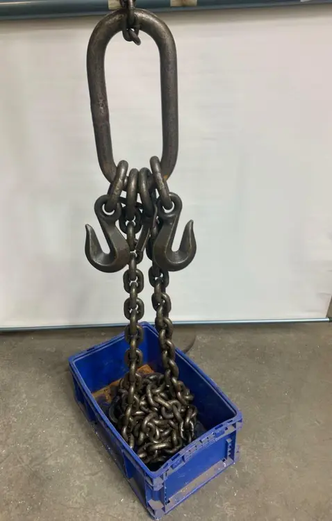 Taylor Adjustable Double Style B (ADB) Chain Sling, 12 ft, 3/4", 16-Ton, Dbl leg Taylor Adjustable Double Style B (ADB) Chain Sling, 12 ft, 3/4", 16-Ton, Dbl leg Click images to enlarge Description INV 2172 This was removed from an aerospace company. No mysteries here. If you can use it, you can save thousands of dollars. Make: Taylor Chain T. N. Alloy WLL (Working Load Limit) 16 Tons at 60 Deg Material: Alloy Steel Reach:12 ft Size: 3/4" Style: Adjustable Double Style B (ADB) Type: Mechanical Chain Sling Includes both a serial number ring and rating tag w/ serial number. Matching serial numbers: D3511 This will be shipped in a container strapped to a pallet. We will prepare it at no charge. Thanks for Looking! I have a regular business selling used equipment. This item is also for sale outside of eBay therefore my listing will often end without notice. If you're interested please bid or make an offer promptly to avoid losing out. Buy with confidence. There is a 14 day return privilege if the item arrives not as described or non-functional unless otherwise stated in the description. Buyer must notify us within 14 days of items arrival. This is not a satisfaction guarantee, I will only honor a return if we miss-listed the items or it does not function properly. I try to take REALLY good photos so you know what you are bidding on. We want you to feel comfortable buying from us. If you have any questions please let us know. Pictures sell!Auctiva offers Free Image Hosting and Editing.300+ Listing Templates!Auctiva gets you noticed!The complete eBay Selling Solution.