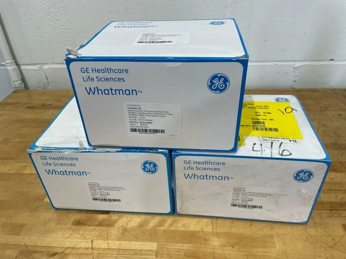 NEW Open Box GE Whatman Polydisc AS Aqueous Filter Device. CAT. 6724-5002 NEW Open Box GE Whatman Polydisc AS Aqueous Filter Device. CAT. 6724-5002 Click images to enlarge Description INV 3380 This is fresh surplus from a Fortune 500 company. They are all still sealed in plastic but he expiration date says SEP 2018 so I'm not sure if they are still good but maybe they have an application so it is priced accordingly GE Healthcare Life Sciences (3) NEW Open Boxes GE Whatman Filter Devices, Total Qty:(18) Model: Polydisc AS CAT no. 6724-5002 Aqueous Solution Filter Device Sterile & Non-Pyrogenic Polyethersulfone Membrane w/Glass Microfiber Polypropylene Housing Pore Size: 0.2um 10 Units - 50 mm Dia. Lot No. 9525483 Expiry Date SEP 2018 Location: Rack B Thanks for Looking! I have a regular business selling used equipment. This item is also for sale outside of eBay therefore my listing will often end without notice. If you're interested please bid or make an offer promptly to avoid losing out. Buy with confidence. There is a 14 day return privilege if the item arrives not as described or non-functional unless otherwise stated in the description. Buyer must notify us within 14 days of items arrival. This is not a satisfaction guarantee, I will only honor a return if we miss-listed the items or it does not function properly. I try to take REALLY good photos so you know what you are bidding on. We want you to feel comfortable buying from us. If you have any questions please let us know. Â Images sell!Get Supersized Images & Free Image HostingCreate your brand with Auctiva'sCustomizable Templates.Attention Sellers - Get TemplatesImage Hosting, Scheduling at Auctiva.com.