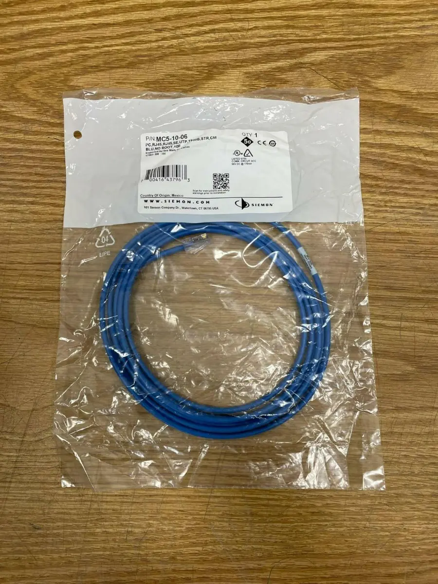 New Unopened SIEMON MC5-10-06 Modular Cord, PC, RJ45, 5E, UTP, T568, BLU, No Boo New Unopened SIEMON MC5-10-06 Modular Cord, PC, RJ45, 5E, UTP, T568, BLU, No Boo Click images to enlarge Description INV 3573 This is new old stock equipment. Never used. Surplus from a completed job. This is surplus from a Fortune 100 company. Nice as it gets. New Unopened SIEMON Model: MC5-10-06 Modular Cord We currently have a quantity of (10) available. Make: Siemon Model: MC5-10-06 PC, RJ45, 5E, UTP, T568, BLU, No Boot, 10F Location: Cart 4 Thanks for Looking! I have a regular business selling used equipment. Buy with confidence. There is a 14 day return privilege if the item arrives not as described or non-functional unless otherwise stated in the description. Buyer must notify us within 14 days of items arrival. This is not a satisfaction guarantee, I will only honor a return if we miss-listed the items or it does not function properly. I try to take REALLY good photos so you know what you are bidding on. We want you to feel comfortable buying from us. If you have any questions please let us know. Images sell!Get Supersized Images & Free Image HostingCreate your brand with Auctiva'sCustomizable Templates.Attention Sellers - Get TemplatesImage Hosting, Scheduling at Auctiva.com.