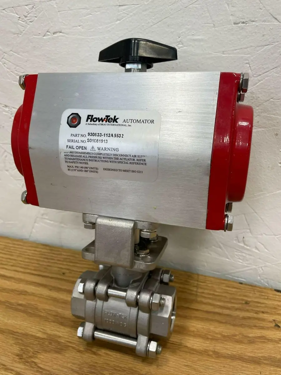 NEW Bray FlowTek Pneumatic Valve Automator Actuator, 930833-113A5532 NEW Bray FlowTek Pneumatic Valve Automator Actuator, 930833-113A5532 Click images to enlarge Description INV 3582 This is new old stock equipment. Never used. Surplus from a completed job. This is surplus from a Fortune 100 company. Nice as it gets. Currently we have a quantity of (9) in stock. NEW Make: Bray FlowTek Type: Actuator Pneumatic Valve Part No. 930833-113A5532 Model: Automator Series: 7000 CWP: 1000 WOG Body: CF8M Ball/Stem: 316SS Pipe: 1 1/4" s/n: S01081913 Location: Rack D Thanks for Looking! I have a regular business selling used equipment. Buy with confidence. There is a 14 day return privilege if the item arrives not as described or non-functional unless otherwise stated in the description. Buyer must notify us within 14 days of items arrival. This is not a satisfaction guarantee, I will only honor a return if we miss-listed the items or it does not function properly. I try to take REALLY good photos so you know what you are bidding on. We want you to feel comfortable buying from us. If you have any questions please let us know. Images sell!Get Supersized Images & Free Image HostingCreate your brand with Auctiva'sCustomizable Templates.Attention Sellers - Get TemplatesImage Hosting, Scheduling at Auctiva.com.