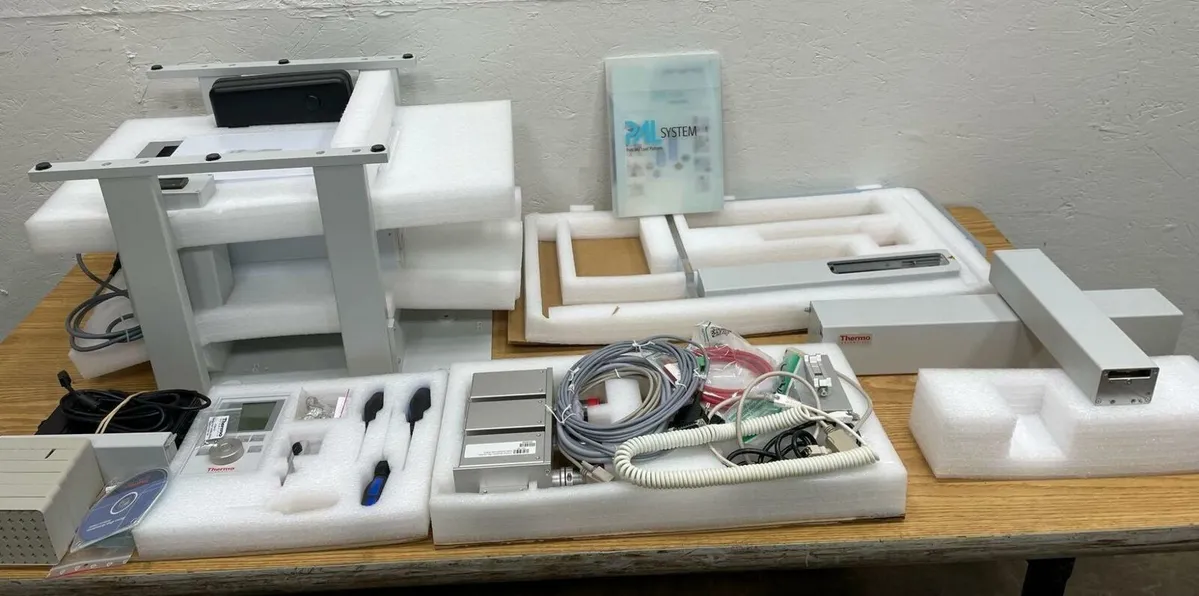 Thermo Scientific PAL Accela Open Autosampler [OPEN BOX] w/ software Thermo Scientific PAL Accela Open Autosampler [OPEN BOX] w/ software Click images to enlarge Description INV 3536 Since this is an open box unused item we are not going to set it all up. We will guarantee it is complete and functional. You may need additional software or a tech for programming. That is not included but we want you to be comfortable if you get it and it is incomplete or otherwise inoperable we will take it back as a return. Let us know if you have any questions. New Open Box Primary use for sample delivery to Mass Spectrometer Detector Shown with optional Thermo Ultimate 3000 RS Pump 12k and Thermo RS Ultimate 3000 Column Compartment 3500k, sold separately Includes: DLW injector system Keypad terminal Cool stack Temperature controller Vici Rheodyne multivalve assembly Elevated table Power supply Software (shown) PAL System Prep & Load Platform System Accela Open Autosampler Stack Cooler MC 04-02 s/n: 0530 Important disclaimer: You are buying item(s) which can be used in chemical and laboratory processes which are potentially dangerous. It is your sole responsibility as the buyer to judge the safety of a given procedure and to assess the compatibility of any lab items with the given procedure. We make every attempt to describe each item correctly and provide pictures for your review. We can offer no warranties, expressed or implied, as to the suitability of these products for any given use. As the buyer you agree the seller shall not be held liable for damage, injury, or any other loss that may occur from the use of any product purchased. As the buyer you further agree to closely inspect any items purchased for defects before putting them into service. By your purchase of this item you are agreeing to hold harmless the seller and ebay in any event of accident, injury, damage, or loss that may arise, under any circumstance, from use of said lab items. Please inspect all equipment, for damage upon receipt and prior to use. Thanks for Looking! I have a regular business selling used equipment. This item is also for sale outside of eBay therefore my listing will often end without notice. If you're interested please bid or make an offer promptly to avoid losing out. Buy with confidence. There is a 14 day return privilege if the item arrives not as described or non-functional unless otherwise stated in the description. Buyer must notify us within 14 days of items arrival. This is not a satisfaction guarantee, I will only honor a return if we miss-listed the items or it does not function properly. I try to take REALLY good photos so you know what you are bidding on. We want you to feel comfortable buying from us. If you have any questions please let us know. Images sell!Get Supersized Images & Free Image HostingCreate your brand with Auctiva'sCustomizable Templates.Attention Sellers - Get TemplatesImage Hosting, Scheduling at Auctiva.com.