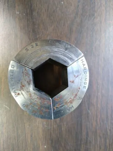 Hardinge S22 Collet Pad 1-1/8" Hexagon Smooth CNC Lathe. Check my other listings! I'm in the process of listing several hundred S22 Collet Pads. These will ship in a small flat rate USPS box unless you purchase enough for a medium box. These came to me in matched sets. The photos are for the exact pads you will be getting. Make: Hardinge Style: S22 Type: Collet Pad Size: 1-1/8 Inside: Smooth Segments: 3 INV#: P 142 Location: Bin 21