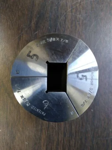 Hardinge S22 Collet Pad 5/8" x 7/8" Rectangle Smooth CNC Lathe. Check my other listings! I'm in the process of listing several hundred S22 Collet Pads. These will ship in a small flat rate USPS box unless you purchase enough for a medium box. These came to me in matched sets. The photos are for the exact pads you will be getting. Make: Hardinge Style: S22 Type: Collet Pad Size: 5/8 x 7/8 Inside: Smooth Segments: 3 INV#: 147 Location: Bin 22