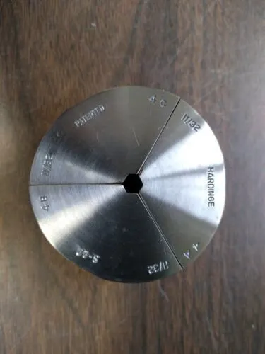 Hardinge S22 Collet Pad 11/32" Hexagon Smooth CNC Lathe. Check my other listings! I'm in the process of listing several hundred S22 Collet Pads. These will ship in a small flat rate USPS box unless you purchase enough for a medium box. These came to me in matched sets. The photos are for the exact pads you will be getting. Make: Hardinge Style: S22 Type: Collet Pad Size: 11/32 Inside: Smooth Segments: 3 INV#: P 174 Location: Bin 22