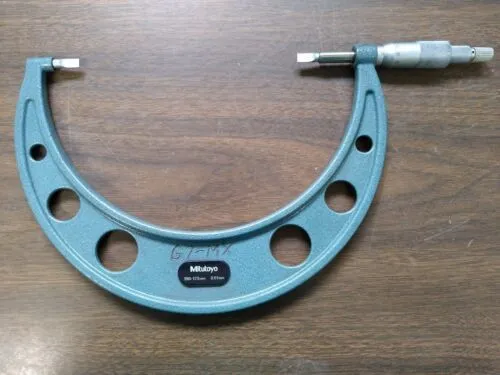 I am in the process of listing several hundred micrometers so please check my other items. These are all from the inspection office of a very large manufacturing company that closed last year. These were all in service. We will guarantee them to calibrate or return them within 30 days. Most of these will have some sort of engraving on them. Please check out the up close photos. Mitutoyo No. 122-107 Micrometer 150mm-175mm Make: Mitutoyo Series: 122-107 Type: Blade Micrometer Range: 150mm-175mm Spindle: Nonrotating Stop: Ratcheting INV#: M 10 Location: Rotomat 23