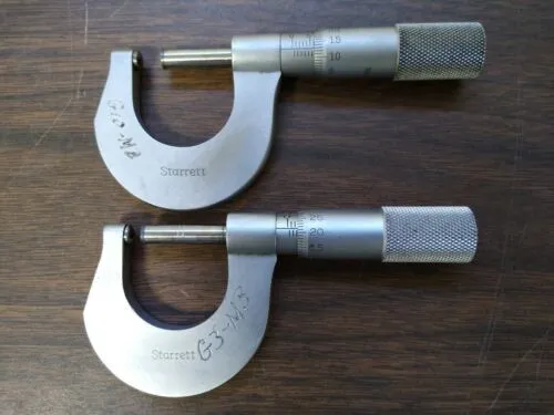 I am in the process of listing several hundred micrometers so please check my other items. These are all from the inspection office of a very large manufacturing company that closed last year. These were all in service. We will guarantee them to calibrate or return them within 30 days. Most of these will have some sort of engraving on them. Please check out the up close photos. 2 Starrett No 577MXP Carbide Tipped Rounded Anvil Micrometer 0mm-25mm Make: Starrett Series: 577MXP Type: Carbide Tipped Rounded Anvil Micrometer Range: 0mm-25mm Spindle: Rotating INV#: M 36 Location: Rotomat 24