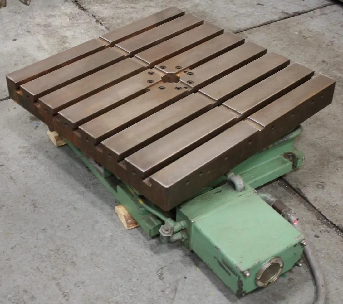 FIBROTAKT Powered Square Rotary Table, 29" X 29" X 10", Boring Mill FIBROTAKT Powered Square Rotary Table, 29" X 29" X 10", Boring Mill Click images to enlarge Description INV 5677 We can load. Please contact us if you would like a video. If you need a shipping quote (we have very competitive rates) please include your FULL address with your request. 29-1/2" X 29-1/2" X 10 FIBROTAKT ROTARY TABLE SERIAL ................... 11-136-0866 TYPE ..................... Y13-750-750US3RA144Z YEAR NEW ................. 1981 LENGTH OF PLATE .......... 29-1/2" WIDTH OF PLATE ........... 29-1/2" HEIGHT OF PLATE .......... 10" NUMBER OF T SLOTS ........ 7 T SLOT CENTERS ........... 4" T SLOT WIDTH AT TOP ...... 7/8" T SLOT WIDTH AT BOTTOM ... 1-1/2" T SLOT DEPTH ............. 1-1/2" AREA OF BASE ............. 24" X 27" Buy with confidence. There is a 14 day return privilege if the item arrives not as described or non-functional unless otherwise stated in the description. Buyer must notify us within 14 days of items arrival. This is not a satisfaction guarantee, I will only honor a return if we miss-listed the items or it does not function properly. I try to take REALLY good photos so you know what you are bidding on. We want you to feel comfortable buying from us. If you have any questions please let us know. Pictures sell!Auctiva offers Free Image Hosting and Editing.300+ Listing Templates!Auctiva gets you noticed!The complete eBay Selling Solution.