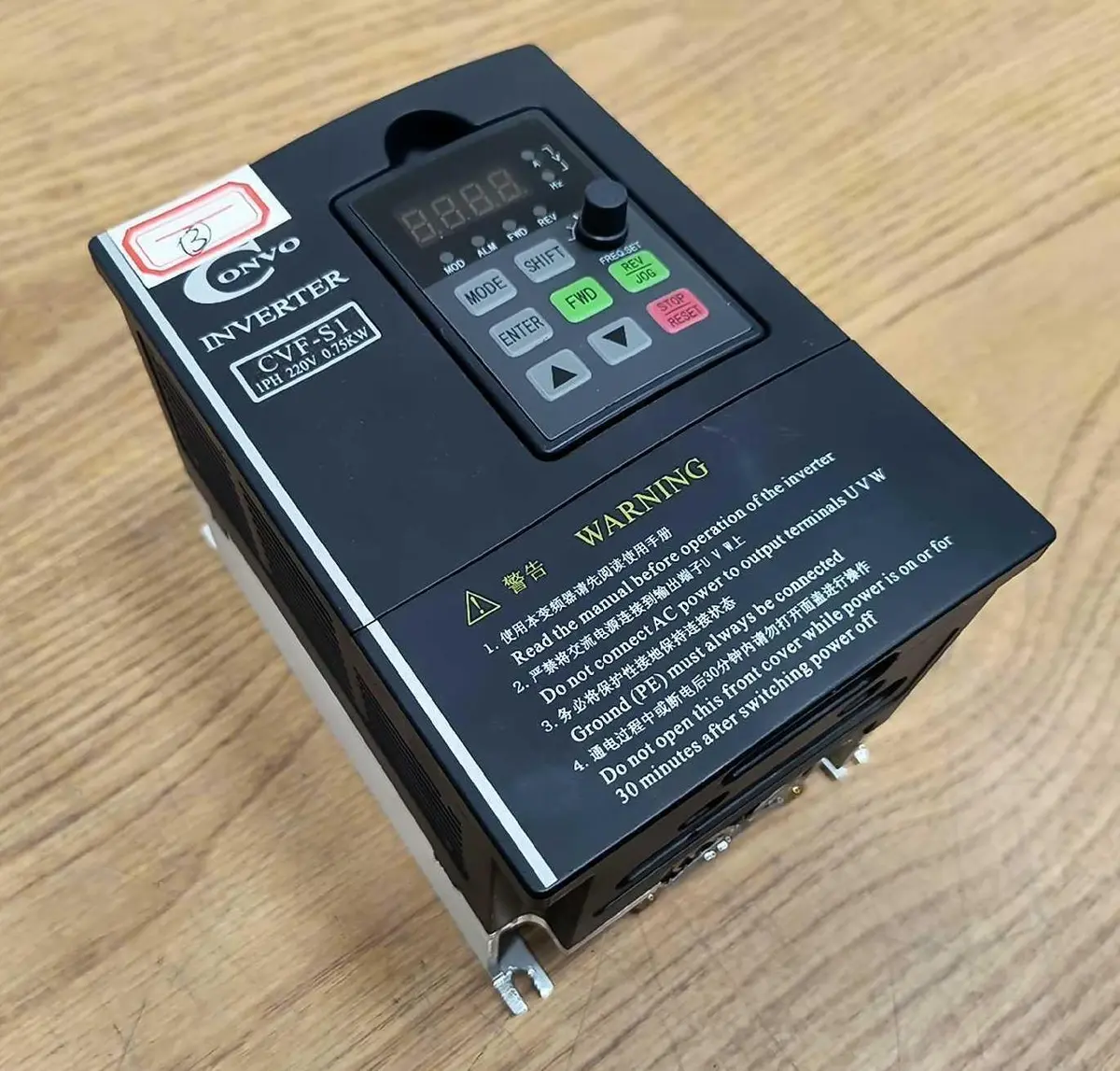 Convo CVF-S1 Frequency Converter FSCS01.1-0K75-1P220-A-AP-NNNN-01V01, From MN Convo CVF-S1 Frequency Converter FSCS01.1-0K75-1P220-A-AP-NNNN-01V01, From MN Click images to enlarge Description INV 6605 These were pulled from a working machine. At the time of the listing we have 4 in stock. Serial number might vary from the one shown but they were all manufactured around the same time. Convo CVF-S1 Frequency Converter Type FSCS01.1-0K75-1P220-A-AP-NNNN-01V01 Manufacturer: Convo Model: CVF-S1 Type: FSCS01.1-0K75-1P220-A-AP-NNNN-01V01 Input: 1XAC, 180-260V, 50/60 Hz Output: 3XAC, 0-220V, 4.7 A, 1.8 kVA MNR: R912100055 AM1 FD: 13W39 Cart 8 Buy with confidence. There is a 14 day return privilege if the item arrives not as described or non-functional unless otherwise stated in the description. Buyer must notify us within 14 days of items arrival. This is not a satisfaction guarantee, I will only honor a return if we miss-listed the items or it does not function properly. I try to take REALLY good photos so you know what you are bidding on. We want you to feel comfortable buying from us. If you have any questions please let us know. Images sell!Get Supersized Images & Free Image HostingCreate your brand with Auctiva'sCustomizable Templates.Attention Sellers - Get TemplatesImage Hosting, Scheduling at Auctiva.com.