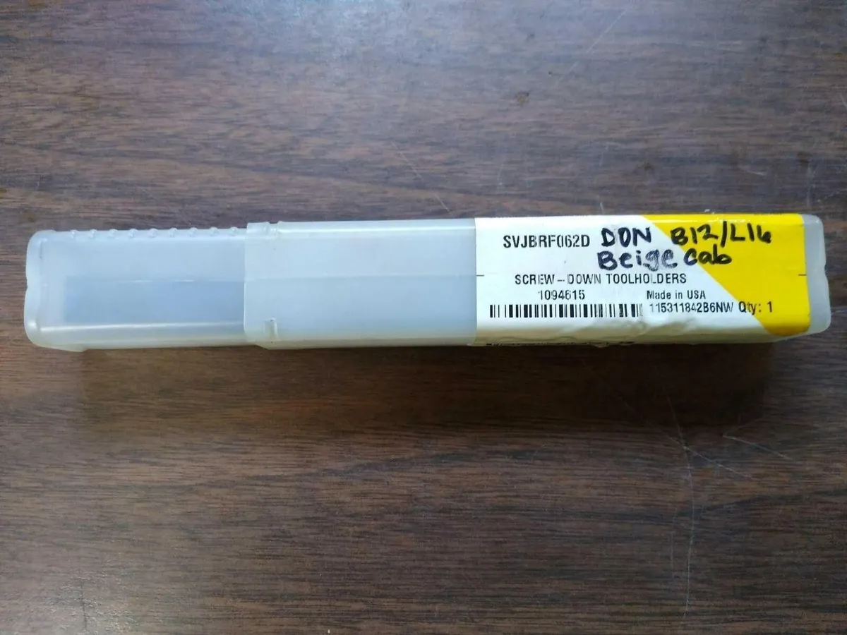Kennametal SVJBRF-062D Screw-Down Tool Holder .38" x 6" Turning 35 Rhomboid Kennametal SVJBRF-062D Screw-Down Tool Holder .38" x 6" Turning 35 Rhomboid Click images to enlarge Description INV 5290 Unused Kennametal SVJBRF-062D Screw-Down Tool Holder Model: SVJBRF-062D Serial: NB6 Screw-On Right Hand OD Turning Holder, .3800 X .3800 Shank, 6.0000 Long, -3° Lead Angle, Uses VB..221 Inserts, First Choice Item Specifications Hand of Cut: Right Shank Height: .3800 Shank Width: .3800 Overall Length" 6.0000 Lead Angle: -3° Gage Insert: VB..221 Insert Style: Positive Series: Screw-On Brand: Kennametal Head Length: .9300 Head Width with Insert: .3750 Insert Screw: MS1153 Insert Shape: 35° Rhomboid Product Group: OD Toolholders CNC Swiss Cart 8 Buy with confidence. There is a 14 day return privilege if the item arrives not as described or non-functional unless otherwise stated in the description. Buyer must notify us within 14 days of items arrival. This is not a satisfaction guarantee, I will only honor a return if we miss-listed the items or it does not function properly. I try to take REALLY good photos so you know what you are bidding on. We want you to feel comfortable buying from us. If you have any questions please let us know. Get images thatmake Supersized seem small.Showcase your items with Auctiva'sListing Templates!THE simple solution for eBay sellers.