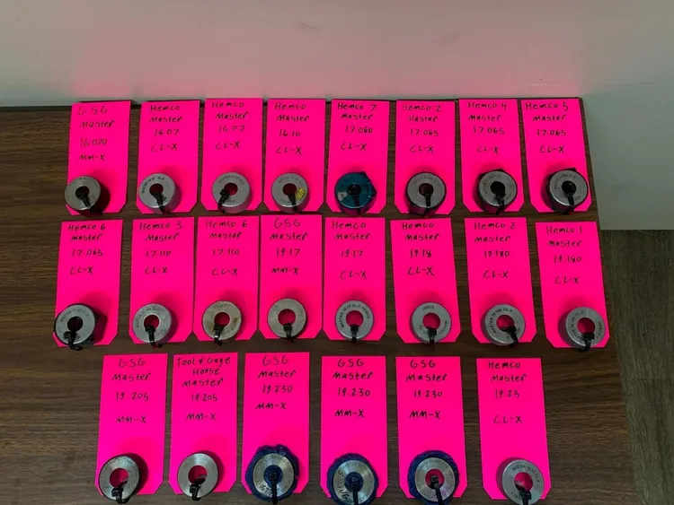 15mm to 20mm Bore Gage Master Setting Ring, Gauge, Class X, Hemco, GSG, PER GAGE 15mm to 20mm Bore Gage Master Setting Ring, Gauge, Class X, Hemco, GSG, PER GAGE Click images to enlarge Description INV 5176 You are buying ONE of the master setting rings below. Actually you can buy as many as you want but the price is PER GAGE. Please see the list below and message me the size(s) you want after you pay. I will do my best to update the sizes as they sell. All of these are from the same aerospace company that closed in Wichita, Kansas. There will likely be some etchings on the back. We will guarantee them to calibrate or return them for a refund (must be notified within 30 days). 14.00 flat shipping for one gage or for all of them. If you want photos of a certain gage please send me a message. Check my other listings for additional sizes. These are all MASTER gages 16.070mm GSG Class X 16.07mm Hemco Class X 16.07mm Hemco Class X 16.10mm Hemco Class X 17.060mm Hemco 7 Class X 17.065mm Hemco 2 Class X 17.065mm Hemco 4 Class X 17.065mm Hemco 5 Class X 17.065mm Hemco 6 Class X 17.110mm Hemco 3 Class X 17.110mm Hemco 6 Class X 19.17mm GSG Class X 19.17mm Hemco Class X 19.18mm Hemco Class X 19.180mm Hemco 2 Class X 19.180mm Hemco 1 Class X 19.205mm GSG Class X 19.205mm Tool & Gage House Class X 19.230mm GSG Class X 19.230mm GSG Class X 19.230mm GSG Class X 19.23mm Hemco Class X Buy with confidence. There is a 14 day return privilege if the item arrives not as described or non-functional unless otherwise stated in the description. Buyer must notify us within 14 days of items arrival. This is not a satisfaction guarantee, I will only honor a return if we miss-listed the items or it does not function properly. I try to take REALLY good photos so you know what you are bidding on. We want you to feel comfortable buying from us. If you have any questions please let us know. Pictures sell!Auctiva offers Free Image Hosting and Editing.300+ Listing Templates!Auctiva gets you noticed!The complete eBay Selling Solution.