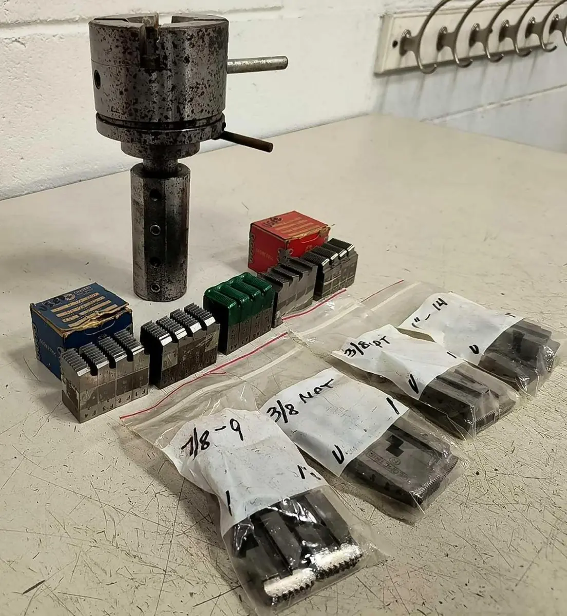 GEOMETRIC TOOL 1" GEOMETRIC DIE HEAD - 1" SHANK, 1-3/4" ADAPTER - STYLE D, Chase GEOMETRIC TOOL 1" GEOMETRIC DIE HEAD - 1" SHANK, 1-3/4" ADAPTER - STYLE D, Chase Click images to enlarge Description INV 6908 We are in the process of listing a lot of different die heads from a shop that was running Brown & Sharps but switched to CNC Swiss. Some of the thread chasers are used, please plan accordingly. We try to take a lot of photos so you know exactly what you are getting, please check them closely. We also have a ton of straight shank tooling. If you buy more than one lot please wait to pay until we can combine shipping. Thanks! The Geometric Tool Company Geometric Die Head Style D Size 1 with Assorted Thread Chasers 1" Shank with 1-3/4" Adapter Manufacturer: Geometric Style: D Size: 1 Shank Diameter: 1" Shank Adapter Diameter: 1-3/4" Head Diameter: 3-1/2" OAL: 8" Type: Geometric Die Head Rack L Thanks for Looking! I have a regular business selling used equipment. This item is also for sale outside of eBay therefore my listing will often end without notice. If you're interested please bid or make an offer promptly to avoid losing out. Buy with confidence. There is a 14 day return privilege if the item arrives not as described or non-functional unless otherwise stated in the description. Buyer must notify us within 14 days of items arrival. This is not a satisfaction guarantee, I will only honor a return if we miss-listed the items or it does not function properly. I try to take REALLY good photos so you know what you are bidding on. We want you to feel comfortable buying from us. If you have any questions please let us know. Get images thatmake Supersized seem small.Showcase your items with Auctiva'sListing Templates!Attention Sellers - Get TemplatesImage Hosting, Scheduling at Auctiva.com.