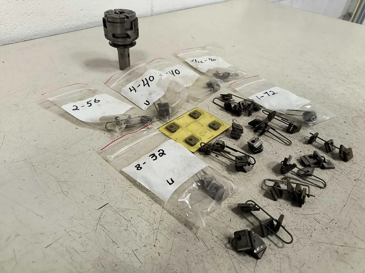H&G GEOMETRIC DIE HEAD - 3/4" SHANK - STYLE MM - SIZE 00, Chasers, Blocks H&G GEOMETRIC DIE HEAD - 3/4" SHANK - STYLE MM - SIZE 00, Chasers, Blocks Click images to enlarge Description INV 6893 We are in the process of listing a lot of different die heads from a shop that was running Brown & Sharps but switched to CNC Swiss. Some of the thread chasers are used, please plan accordingly. We try to take a lot of photos so you know exactly what you are getting, please check them closely. We also have a ton of straight shank tooling. If you buy more than one lot please wait to pay until we can combine shipping. Thanks! H&G Geometric Die Head Style MM Size 00 with Assortment of Thread Chasers 3/4" Shank. Head Contains (4) Chaser Blocks. Manufacturer: H&G Style: MM Size: 00 Head Diameter: 2" Shank Diameter: 3/4" OAL: 3-5/8" Rack L Thanks for Looking! I have a regular business selling used equipment. This item is also for sale outside of eBay therefore my listing will often end without notice. If you're interested please bid or make an offer promptly to avoid losing out. Buy with confidence. There is a 14 day return privilege if the item arrives not as described or non-functional unless otherwise stated in the description. Buyer must notify us within 14 days of items arrival. This is not a satisfaction guarantee, I will only honor a return if we miss-listed the items or it does not function properly. I try to take REALLY good photos so you know what you are bidding on. We want you to feel comfortable buying from us. If you have any questions please let us know. Images sell!Get Supersized Images & Free Image HostingCreate your brand with Auctiva'sCustomizable Templates.Attention Sellers - Get TemplatesImage Hosting, Scheduling at Auctiva.com.