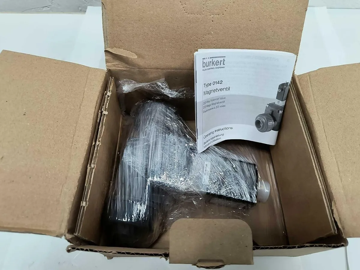New Old Stock Burkert Type 0142, 00454146 2/2 Way Solenoid Valve New Old Stock Burkert Type 0142, 00454146 2/2 Way Solenoid Valve Click images to enlarge Description INV 6137 This item is surplus from a canceled project at a Fortune 500 company. No mystery here. Just unused surplus. Guaranteed to perform as new or return it. We have a quantity of (6) at the time of this listing. New Old Stock Burkert Type 0142 Model 00454146 2/2 Way Solenoid Valve Manufacturer: Burkert Model: 00454146 Type: 2/2 Way Solenoid Valve Cart 7 Thanks for Looking! I have a regular business selling used equipment. This item is also for sale outside of eBay therefore my listing will often end without notice. If you're interested please bid or make an offer promptly to avoid losing out. Buy with confidence. There is a 14 day return privilege if the item arrives not as described or non-functional unless otherwise stated in the description. Buyer must notify us within 14 days of items arrival. This is not a satisfaction guarantee, I will only honor a return if we miss-listed the items or it does not function properly. I try to take REALLY good photos so you know what you are bidding on. We want you to feel comfortable buying from us. If you have any questions please let us know. Get images thatmake Supersized seem small.Showcase your items with Auctiva'sListing Templates!THE simple solution for eBay sellers.