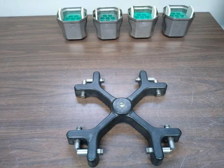 Beckman TH-4 Bucket Rotor with (4) Swinging Buckets and Inserts Beckman TH-4 Bucket Rotor with (4) Swinging Buckets and Inserts Click images to enlarge Description INV 5674 Beckman Model TH-4 Bucket Rotor with (4) Swinging Buckets and Inserts (2) Buckets 539 Grams (2) Buckets 547 grams Make: Beckman Coulter Model: TH-4 Serial: 6962 Rack G Buy with confidence. There is a 14 day return privilege if the item arrives not as described or non-functional unless otherwise stated in the description. Buyer must notify us within 14 days of items arrival. This is not a satisfaction guarantee, I will only honor a return if we miss-listed the items or it does not function properly. I try to take REALLY good photos so you know what you are bidding on. We want you to feel comfortable buying from us. If you have any questions please let us know. Images sell!Get Supersized Images & Free Image HostingCreate your brand with Auctiva'sCustomizable Templates.Attention Sellers - Get TemplatesImage Hosting, Scheduling at Auctiva.com.