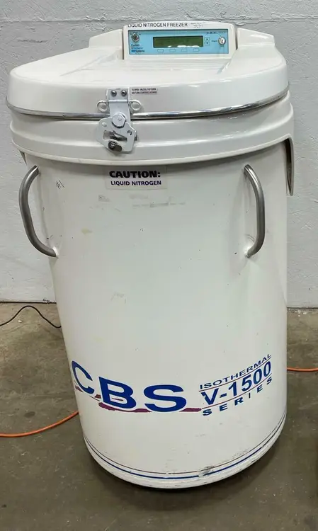 Custom BioGenic Systems CBS V-1500 Cryogenic Liquid Nitrogen Isothermal Freezer Custom BioGenic Systems CBS V-1500 Cryogenic Liquid Nitrogen Isothermal Freezer Click images to enlarge Description INV 3506 We will guarantee this item to function as intended and have a 14 day inspection period from the time the unit arrives. Any claims must be made in the first 14 days. This item ships LTL and will be carefully banded to a pallet for safe delivery. Crating available for an additional cost. Make: CBS Custom BioGenic Systems Model: Isothermal V-1500 Series: 2300 Type: Cryogenic Liquid Nitrogen Storage System Serial Number: NA Tank: CryoFab Tank ISO-125 Racks shown in photos incluced. Neck Opening: 21" Exterior Dimensions: Inches (MM) Width: 26 (660) Depth: 37 (939) Height: 45 (1,143) Interior Dimensions: Inches (MM) Usable Height: 29 (736) Usable Diameter: 21 (534) Maximum Storage Capacities:' Vials (2ml): 9,100 Blood Bags (50ml): 434 Isothermal Liquid Nitrogen Freezers from Custom Biogenic Systems (CBS) provide the most consistent liquid nitrogen storage temperatures without any contact of LN2. The liquid nitrogen is stored in a patented jacketed space in the wall of the freezer, offering safe dry storage for your samples. Eliminating LN2 in the storage area greatly reduces the risk of cross contamination and other safety risks associated with the handling of liquid nitrogen. The wide lid opening of these isothermal freezers allows for easy, unrestricted access to samples while maintaining temperatures inside the freezer. All Isothermal freezers come equipped with a time tested and reliable 2301 controller with a dual temperature display, autofill and many additional features. The Custom BioGenic Isothermal Liquid Nitrogen Freezers have an industry best temperature gradient that averages -193°C inside the storage area. Important disclaimer: You are buying item(s) which can be used in chemical and laboratory processes which are potentially dangerous. It is your sole responsibility as the buyer to judge the safety of a given procedure and to assess the compatibility of any lab items with the given procedure. We make every attempt to describe each item correctly and provide pictures for your review. We can offer no warranties, expressed or implied, as to the suitability of these products for any given use. As the buyer you agree the seller shall not be held liable for damage, injury, or any other loss that may occur from the use of any product purchased. As the buyer you further agree to closely inspect any items purchased for defects before putting them into service. By your purchase of this item you are agreeing to hold harmless the seller and ebay in any event of accident, injury, damage, or loss that may arise, under any circumstance, from use of said lab items. Please inspect all equipment, for damage upon receipt and prior to use. Thanks for Looking! I have a regular business selling used equipment. This item is also for sale outside of eBay therefore my listing will often end without notice. If you're interested please bid or make an offer promptly to avoid losing out. Buy with confidence. There is a 14 day return privilege if the item arrives not as described or non-functional unless otherwise stated in the description. Buyer must notify us within 14 days of items arrival. This is not a satisfaction guarantee, I will only honor a return if we miss-listed the items or it does not function properly. I try to take REALLY good photos so you know what you are bidding on. We want you to feel comfortable buying from us. If you have any questions please let us know Get images thatmake Supersized seem small.Showcase your items with Auctiva'sListing Templates!THE simple solution for eBay sellers.