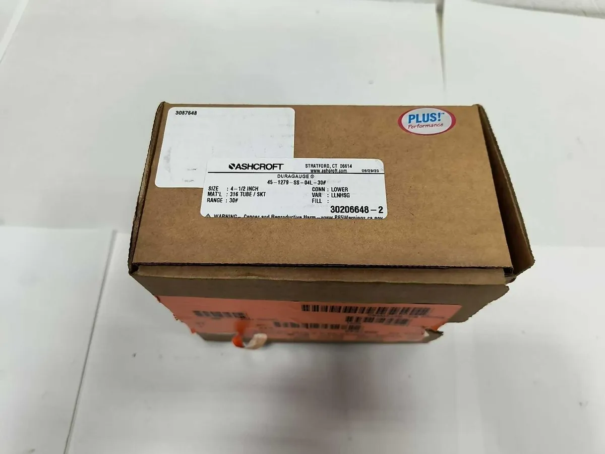 New Old Stock Ashcroft Duragauge 4-1/2" Pressure Gauge 45-1279-SS-04L-30# New Old Stock Ashcroft Duragauge 4-1/2" Pressure Gauge 45-1279-SS-04L-30# Click images to enlarge Description INV 6123 New Old Stock Ashcroft Duragauge 4-1/2" Pressure Gauge Model 45-1279-SS-04L-30# Manufacturer: Ashcroft Model: 45-1279-SS-04L-30# S/N: 3087648 Type: Pressure Gauge Max PSI: 30 lbs. Rack A Thanks for Looking! I have a regular business selling used equipment. This item is also for sale outside of eBay therefore my listing will often end without notice. If you're interested please bid or make an offer promptly to avoid losing out. Buy with confidence. There is a 14 day return privilege if the item arrives not as described or non-functional unless otherwise stated in the description. Buyer must notify us within 14 days of items arrival. This is not a satisfaction guarantee, I will only honor a return if we miss-listed the items or it does not function properly. I try to take REALLY good photos so you know what you are bidding on. We want you to feel comfortable buying from us. If you have any questions please let us know. Get images thatmake Supersized seem small.Showcase your items with Auctiva'sListing Templates!THE simple solution for eBay sellers.
