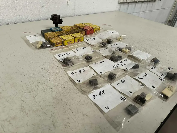 GEOMETRIC TOOL 5/16" GEOMETRIC DIE HEAD, 5/8" SHANK, STYLE DS, with Chasers GEOMETRIC TOOL 5/16" GEOMETRIC DIE HEAD, 5/8" SHANK, STYLE DS, with Chasers Click images to enlarge Description INV 6902 We are in the process of listing a lot of different die heads from a shop that was running Brown & Sharpes but switched to CNC Swiss. Some of the thread chasers are used, please plan accordingly. We try to take a lot of photos so you know exactly what you are getting, please check them closely. We also have a ton of straight shank tooling. If you buy more than one lot please wait to pay until we can combine shipping. Thanks! The Geometric Tool Company Geometric Die Head Style DS Size 5/16 with Large Assortment of Thread Chasers 5/8" Shank Manufacturer: Geometric Style: DS Size: 5/16 S/N: B86155 Shank Diameter: 5/8" Head Diameter: 1/2" OAL: 2-3/4" Type: Geometric Die Head Rack L Thanks for Looking! I have a regular business selling used equipment. This item is also for sale outside of eBay therefore my listing will often end without notice. If you're interested please bid or make an offer promptly to avoid losing out. Buy with confidence. There is a 14 day return privilege if the item arrives not as described or non-functional unless otherwise stated in the description. Buyer must notify us within 14 days of items arrival. This is not a satisfaction guarantee, I will only honor a return if we miss-listed the items or it does not function properly. I try to take REALLY good photos so you know what you are bidding on. We want you to feel comfortable buying from us. If you have any questions please let us know. Pictures sell!Auctiva offers Free Image Hosting and Editing.300+ Listing Templates!Auctiva gets you noticed!The complete eBay Selling Solution.