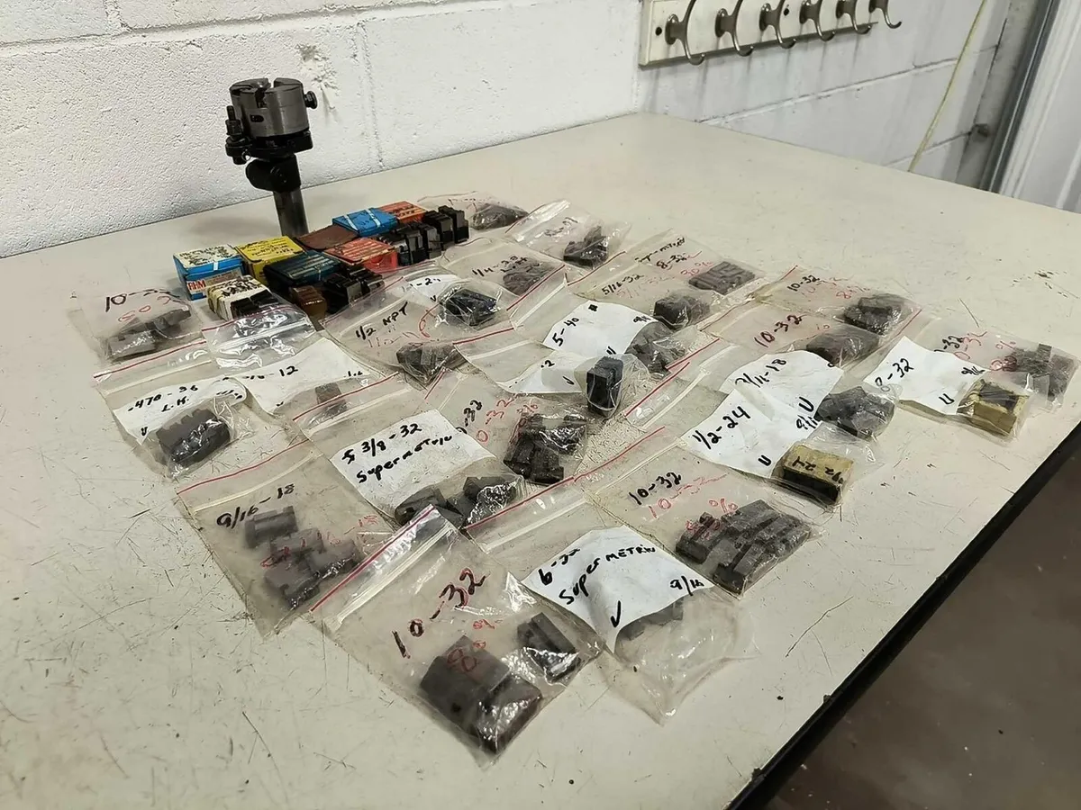 GEOMETRIC TOOL 9/16" GEOMETRIC DIE HEAD - 3/4" SHANK, 1" ADAPTER - STYLE DSA w/ GEOMETRIC TOOL 9/16" GEOMETRIC DIE HEAD - 3/4" SHANK, 1" ADAPTER - STYLE DSA w/ Click images to enlarge Description INV 6904 We are in the process of listing a lot of different die heads from a shop that was running Brown & Sharpes but switched to CNC Swiss. Some of the thread chasers are used, please plan accordingly. We try to take a lot of photos so you know exactly what you are getting, please check them closely. We also have a ton of straight shank tooling. If you buy more than one lot please wait to pay until we can combine shipping. Thanks! The Geometric Tool Company Geometric Die Head Style DSA Size 9/16 with Large Assortment of Thread Chasers 3/4" Shank in 1" Adapter Manufacturer: Geometric Style: DSA Size: 9/16 Shank Diameter: 3/4" Shank Adapter: 1" Head Diameter: 2-1/2" OAL: 5-1/2" Type: Geometric Die Head Rack L Thanks for Looking! I have a regular business selling used equipment. This item is also for sale outside of eBay therefore my listing will often end without notice. If you're interested please bid or make an offer promptly to avoid losing out. Buy with confidence. There is a 14 day return privilege if the item arrives not as described or non-functional unless otherwise stated in the description. Buyer must notify us within 14 days of items arrival. This is not a satisfaction guarantee, I will only honor a return if we miss-listed the items or it does not function properly. I try to take REALLY good photos so you know what you are bidding on. We want you to feel comfortable buying from us. If you have any questions please let us know. Get images thatmake Supersized seem small.Showcase your items with Auctiva'sListing Templates!THE simple solution for eBay sellers.