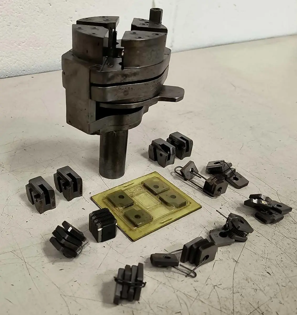 H&G SIZE 101 GEOMETRIC DIE HEAD, 1" SHANK, STYLE DM, Chasers, Blocks H&G SIZE 101 GEOMETRIC DIE HEAD, 1" SHANK, STYLE DM, Chasers, Blocks Click images to enlarge Description INV 6870 We are in the process of listing a lot of different die heads from a shop that was running Brown & Sharps but switched to CNC Swiss. Some of the thread chasers are used, please plan accordingly. We try to take a lot of photos so you know exactly what you are getting, please check them closely. We also have a ton of straight shank tooling. If you buy more than one lot please wait to pay until we can combine shipping. Thanks! H&G Geometric Die Head Style DM Size 101 with (4) Chaser Blocks and Assortment of Thread Chasers 1" Shank Manufacturer: H&G Style: DM Size: 101 S/N: 1526 Head Diameter: 4" Shank Diameter: 1" OAL: 5-1/4" Chaser Blocks: (4) DH 0 - 1/2 Rack F Thanks for Looking! I have a regular business selling used equipment. This item is also for sale outside of eBay therefore my listing will often end without notice. If you're interested please bid or make an offer promptly to avoid losing out. Buy with confidence. There is a 14 day return privilege if the item arrives not as described or non-functional unless otherwise stated in the description. Buyer must notify us within 14 days of items arrival. This is not a satisfaction guarantee, I will only honor a return if we miss-listed the items or it does not function properly. I try to take REALLY good photos so you know what you are bidding on. We want you to feel comfortable buying from us. If you have any questions please let us know. Pictures sell!Auctiva offers Free Image Hosting and Editing.300+ Listing Templates!Auctiva gets you noticed!The complete eBay Selling Solution.