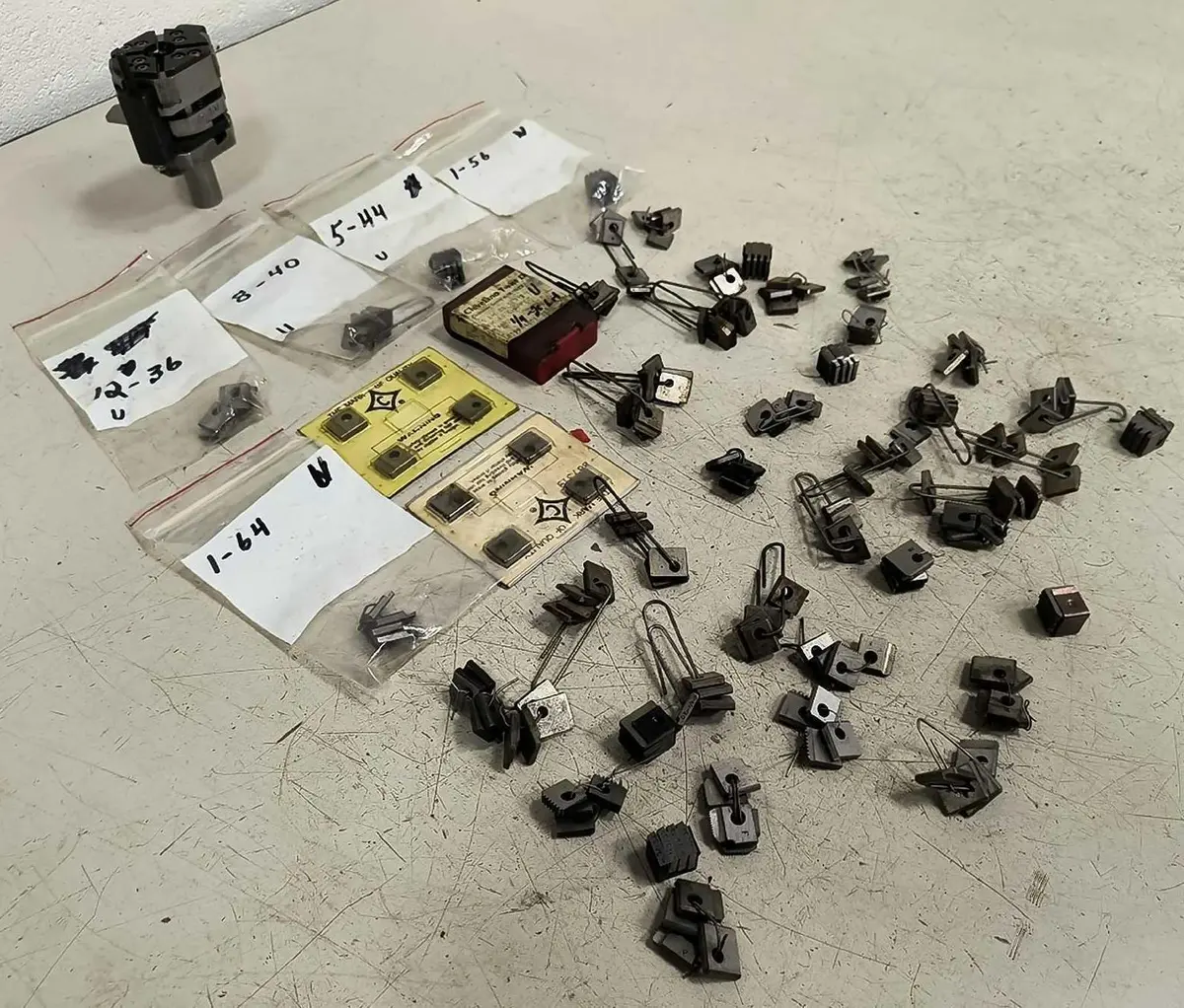 CLEVELAND Size 00 GEOMETRIC DIE HEAD - 5/8" SHANK - STYLE DMC - Chasers, Blocks CLEVELAND Size 00 GEOMETRIC DIE HEAD - 5/8" SHANK - STYLE DMC - Chasers, Blocks Click images to enlarge Description INV 6885 We are in the process of listing a lot of different die heads from a shop that was running Brown & Sharps but switched to CNC Swiss. Some of the thread chasers are used, please plan accordingly. We try to take a lot of photos so you know exactly what you are getting, please check them closely. We also have a ton of straight shank tooling. If you buy more than one lot please wait to pay until we can combine shipping. Thanks! Cleveland Geometric Die Head Style DMC Size 00 with Large Assortment of Thread Chasers 5/8" Shank. Head Contains (4) Chaser Blocks. Manufacturer: Cleveland Style: DMC Size: 00 S/N: 87-160 Head Diameter: 2" Shank Diameter: 5/8" OAL: 3-1/4" Rack L Thanks for Looking! I have a regular business selling used equipment. This item is also for sale outside of eBay therefore my listing will often end without notice. If you're interested please bid or make an offer promptly to avoid losing out. Buy with confidence. There is a 14 day return privilege if the item arrives not as described or non-functional unless otherwise stated in the description. Buyer must notify us within 14 days of items arrival. This is not a satisfaction guarantee, I will only honor a return if we miss-listed the items or it does not function properly. I try to take REALLY good photos so you know what you are bidding on. We want you to feel comfortable buying from us. If you have any questions please let us know. Pictures sell!Auctiva offers Free Image Hosting and Editing.300+ Listing Templates!Auctiva gets you noticed!The complete eBay Selling Solution.