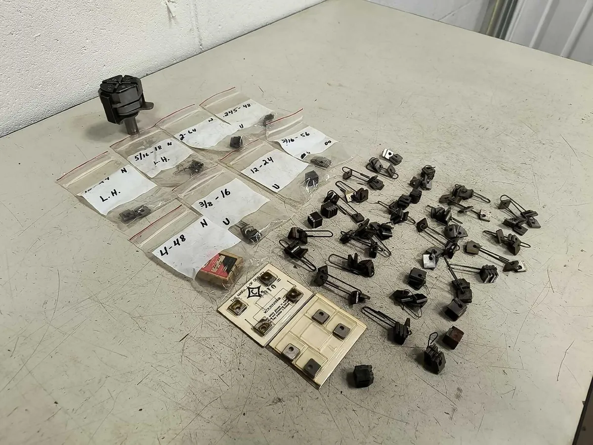 H&G GEOMETRIC DIE HEAD - 5/8" SHANK - STYLE DMLN - SIZE 00, Chasers, Blocks H&G GEOMETRIC DIE HEAD - 5/8" SHANK - STYLE DMLN - SIZE 00, Chasers, Blocks Click images to enlarge Description INV 6887 We are in the process of listing a lot of different die heads from a shop that was running Brown & Sharps but switched to CNC Swiss. Some of the thread chasers are used, please plan accordingly. We try to take a lot of photos so you know exactly what you are getting, please check them closely. We also have a ton of straight shank tooling. If you buy more than one lot please wait to pay until we can combine shipping. Thanks! H&G Geometric Die Head Style DMLN Size 00 with Large Assortment of Thread Chasers 5/8" Shank. Head Contains (4) Chaser Blocks. Manufacturer: H&G Style: DMLN Size: 00 S/N: 9355 Head Diameter: 2" Shank Diameter: 5/8" OAL: 3" Rack L Thanks for Looking! I have a regular business selling used equipment. This item is also for sale outside of eBay therefore my listing will often end without notice. If you're interested please bid or make an offer promptly to avoid losing out. Buy with confidence. There is a 14 day return privilege if the item arrives not as described or non-functional unless otherwise stated in the description. Buyer must notify us within 14 days of items arrival. This is not a satisfaction guarantee, I will only honor a return if we miss-listed the items or it does not function properly. I try to take REALLY good photos so you know what you are bidding on. We want you to feel comfortable buying from us. If you have any questions please let us know. Get images thatmake Supersized seem small.Showcase your items with Auctiva'sListing Templates!THE simple solution for eBay sellers.