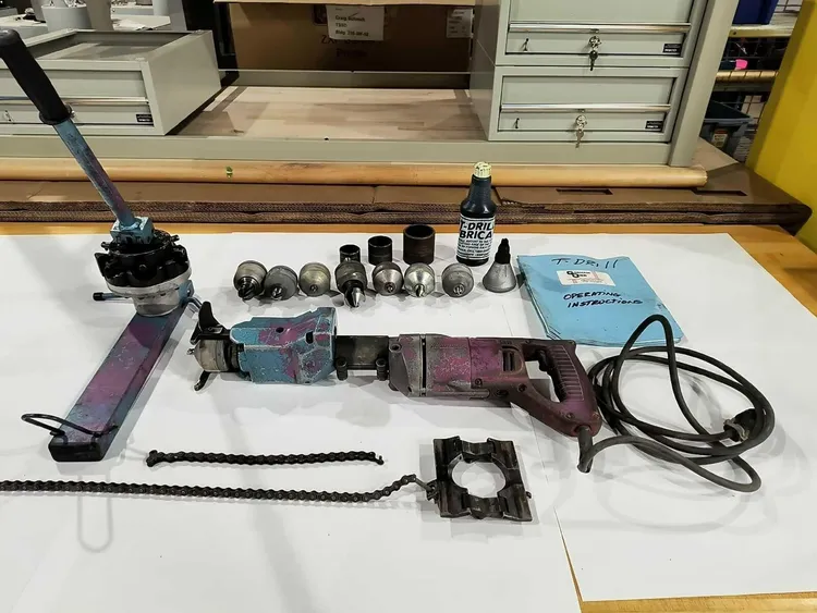 T-Drill T-50 Corded Copper Pipe Notcher Cutting Forming Machine Set w/ Accy's T-Drill T-50 Corded Copper Pipe Notcher Cutting Forming Machine Set w/ Accy's Click images to enlarge Description INV 5872 This is from a freshly closed HVAC and plumbing company. We will guarantee it will operate as intended but please check all the photos for completeness. We are not experts on these and what you see if exactly what you will get. Manufacturer: T-Drill Model: T-50 Type: Copper Pipe Notcher Cart 3 Buy with confidence. There is a 14 day return privilege if the item arrives not as described or non-functional unless otherwise stated in the description. Buyer must notify us within 14 days of items arrival. This is not a satisfaction guarantee, I will only honor a return if we miss-listed the items or it does not function properly. I try to take REALLY good photos so you know what you are bidding on. We want you to feel comfortable buying from us. If you have any questions please let us know. Get images thatmake Supersized seem small.Showcase your items with Auctiva'sListing Templates!THE simple solution for eBay sellers.