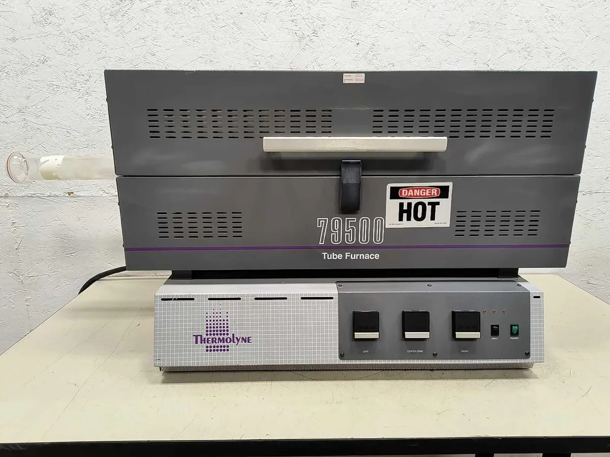 Barnstead Thermolyne F79520 Tube Furnace 2" Process Tube, (3) 8" Zones, Controls Barnstead Thermolyne F79520 Tube Furnace 2" Process Tube, (3) 8" Zones, Controls Click images to enlarge Description INV 7116 Fresh from a very large Minnesota Manufacturing company who regularly purges unused assets. Unit powers up and zones heated. We can arrange for LTL shipping. Please send your COMPLETE address if you need a shipping quote. Manufacturer: Barnstead/Thermolyne Model: F79520 Serial Number:1082971035317 Process Tube Diameter: 2" Temperature Range: 100-1200 Deg C. Heating Zones: 8" Control: Single Set Point Digital Auto Phase: 1 Volts: 240 Amps: 24.0 Watts: 5760 Hz: 50/60 Approximate Dimensions: 48-1/4" x 18" x 23" Weight 170 Lbs Furnace Model HTF55347C Controller Model CC58434BC-1 Thanks for Looking! I have a regular business selling used equipment. This item is also for sale outside of eBay therefore my listing will often end without notice. If you're interested please bid or make an offer promptly to avoid losing out. Buy with confidence. There is a 14 day return privilege if the item arrives not as described or non-functional unless otherwise stated in the description. Buyer must notify us within 14 days of items arrival. This is not a satisfaction guarantee, I will only honor a return if we miss-listed the items or it does not function properly. I try to take REALLY good photos so you know what you are bidding on. We want you to feel comfortable buying from us. If you have any questions please let us know. Pictures sell!Auctiva offers Free Image Hosting and Editing.300+ Listing Templates!Auctiva gets you noticed!The complete eBay Selling Solution.
