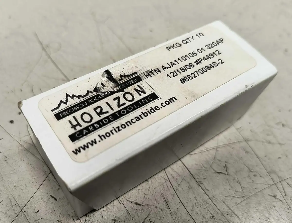 New in Box (10) Horizon Carbide Tool Co. HTN AJA110106 01 320AP Grooving Inserts New in Box (10) Horizon Carbide Tool Co. HTN AJA110106 01 320AP Grooving Inserts Click images to enlarge Description INV 7048 New in Box (10) Horizon Carbide Tool Co. HTN AJA110106 01 320AP Grooving Inserts for Kennametal Top Notch #4Â 90 Degree or Straight Shank 1" Tool Holder. Fits NER or TER Tool Holders. Tylon Coated with Hone. We have a Qty of (6) sets of 10x at the time of this listing Manufacturer: Horizon Tool Co. Model: HTN AJA110106 01 320AP Application: Grooving Blank Side: Left Holder Style: TER or NER Holder Angle: 90 Degree or Straight Shank Shank Size: 1" Coating: Tylon Hone: Yes Rack B Thanks for Looking! I have a regular business selling used equipment. This item is also for sale outside of eBay therefore my listing will often end without notice. If you're interested please bid or make an offer promptly to avoid losing out. Buy with confidence. There is a 14 day return privilege if the item arrives not as described or non-functional unless otherwise stated in the description. Buyer must notify us within 14 days of items arrival. This is not a satisfaction guarantee, I will only honor a return if we miss-listed the items or it does not function properly. I try to take REALLY good photos so you know what you are bidding on. We want you to feel comfortable buying from us. If you have any questions please let us know. Get images thatmake Supersized seem small.Showcase your items with Auctiva'sListing Templates!THE simple solution for eBay sellers.