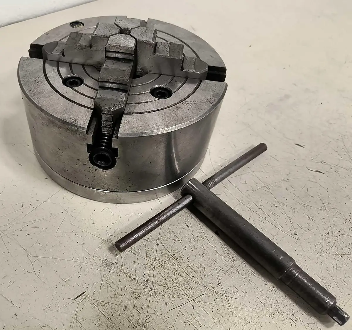 Buck 8" 4-Jaw Chuck w/ Key and Removable Flat Back Mounting Plate Buck 8" 4-Jaw Chuck w/ Key and Removable Flat Back Mounting Plate Click images to enlarge Description INV 6998 Buck Chuck 8" 4 Jaw Chuck with Chuck Key and Flat Back Mounting Plate Manufacturer: Buck Chuck Diameter: 8" Jaws: 4 Type: Chuck Blue Rack Thanks for Looking! I have a regular business selling used equipment. This item is also for sale outside of eBay therefore my listing will often end without notice. If you're interested please bid or make an offer promptly to avoid losing out. Buy with confidence. There is a 14 day return privilege if the item arrives not as described or non-functional unless otherwise stated in the description. Buyer must notify us within 14 days of items arrival. This is not a satisfaction guarantee, I will only honor a return if we miss-listed the items or it does not function properly. I try to take REALLY good photos so you know what you are bidding on. We want you to feel comfortable buying from us. If you have any questions please let us know. Get images thatmake Supersized seem small.Showcase your items with Auctiva'sListing Templates!THE simple solution for eBay sellers.