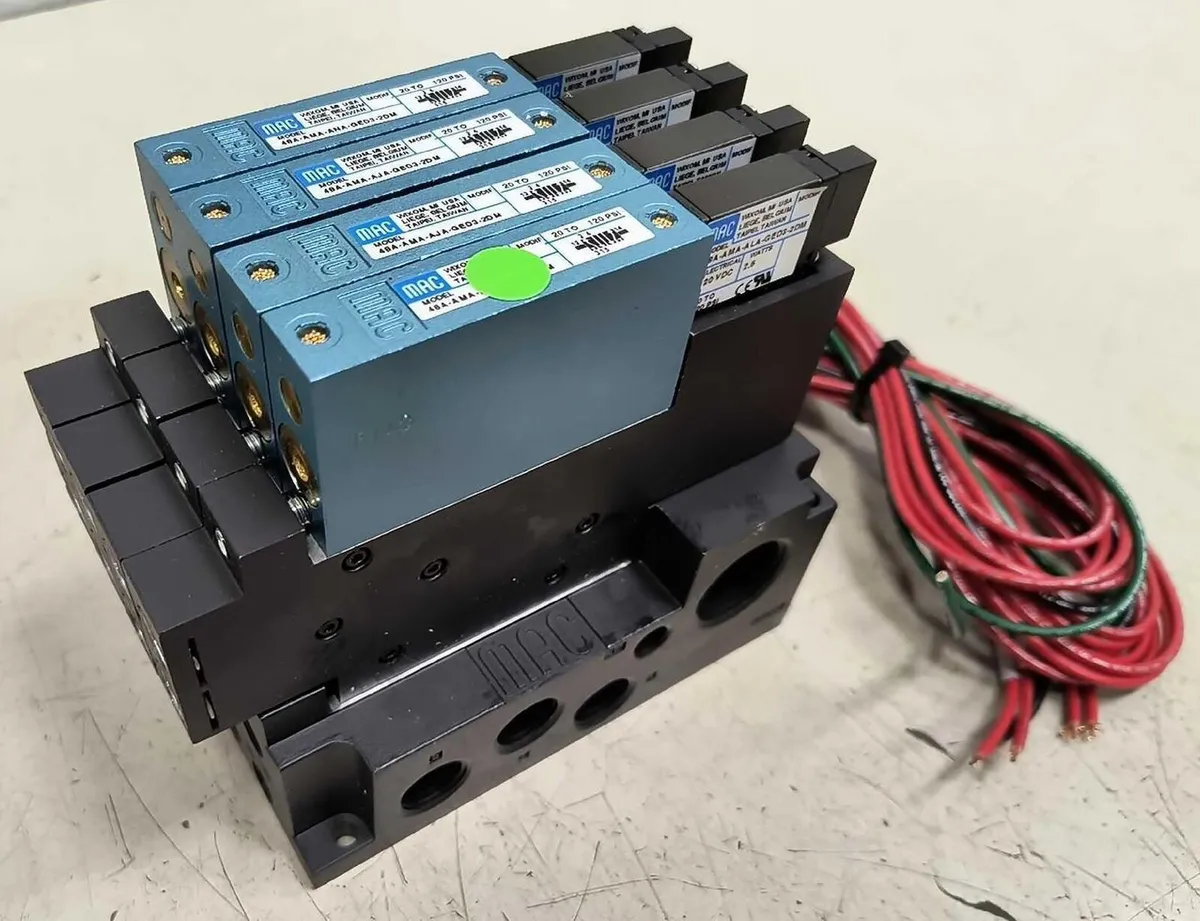 MAC Solenoid Valve Assembly, 4x FC48A-AB Flow Valve 4x 48A-AMA-ANAGED3-2DM Base MAC Solenoid Valve Assembly, 4x FC48A-AB Flow Valve 4x 48A-AMA-ANAGED3-2DM Base Click images to enlarge Description INV 7342 This appears unused. It came in with a load of NOS surplus parts & MRO. MAC Solenoid Valve Assembly Consisting of (4) Model FC48A-AB Flow Control Valve (4) Model 48A-AMA-ANAGED3-2DM Solenoid Valves (1) 4-Station base Appears Unused Rotomat 44 Thanks for Looking! I have a regular business selling used equipment. This item is also for sale outside of eBay therefore my listing will often end without notice. If you're interested please bid or make an offer promptly to avoid losing out. Buy with confidence. There is a 14 day return privilege if the item arrives not as described or non-functional unless otherwise stated in the description. Buyer must notify us within 14 days of items arrival. This is not a satisfaction guarantee, I will only honor a return if we miss-listed the items or it does not function properly. I try to take REALLY good photos so you know what you are bidding on. We want you to feel comfortable buying from us. If you have any questions please let us know. Â Get images thatmake Supersized seem small.Showcase your items with Auctiva'sListing Templates!THE simple solution for eBay sellers.