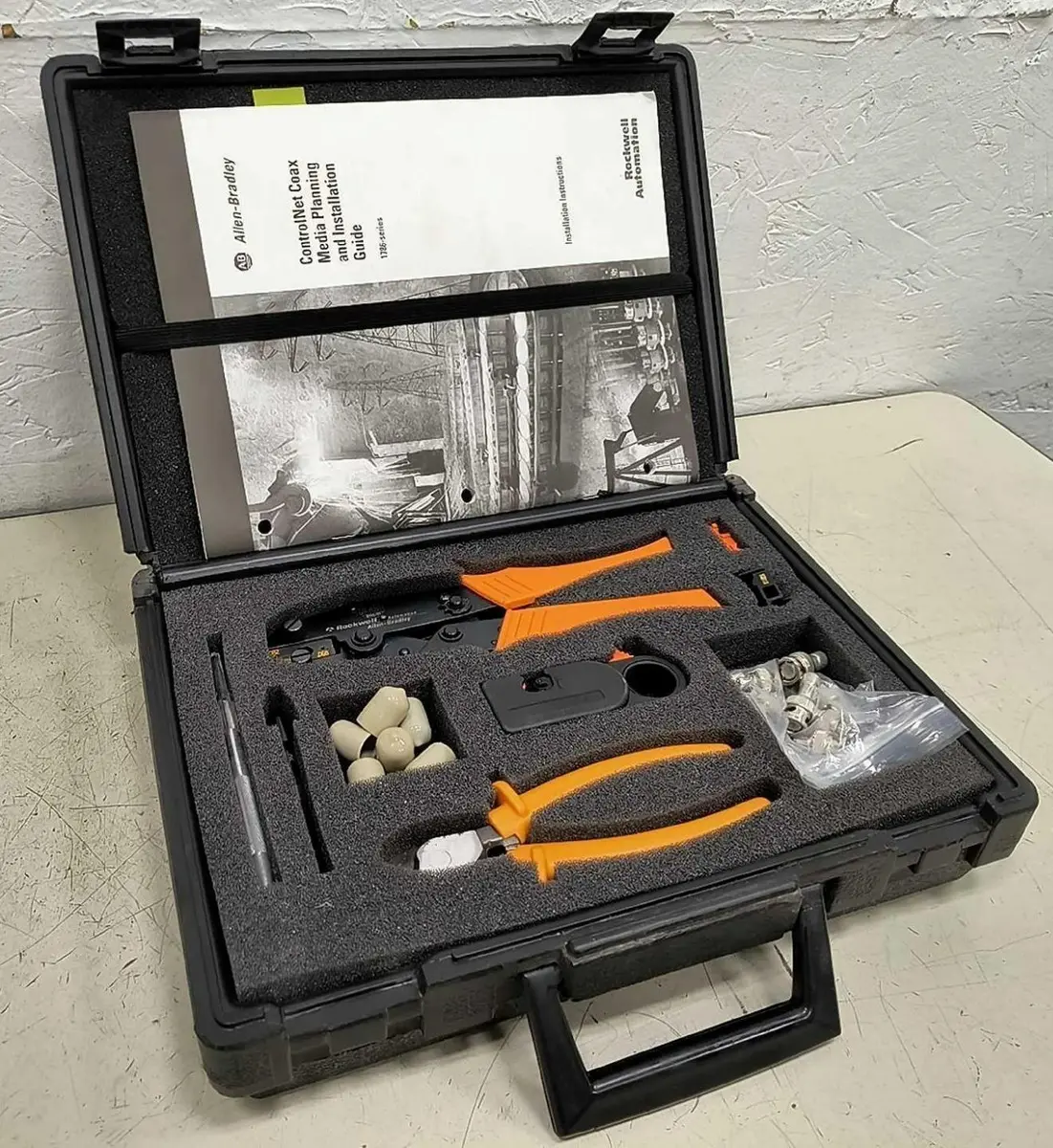 Allen Bradley/Rockwell Automation 1786-CTK/B ControlNet Coax Tool Kit Allen Bradley/Rockwell Automation 1786-CTK/B ControlNet Coax Tool Kit Click images to enlarge Description INV 7504 Fresh from a closed shop in my area. Check all the photos, a lot of the components are pushed down in the case. Thanks! Allen-Bradley/Rockwell Automation ControlNet Coax Tool Kit 1786-CTK/B in Case Kit Includes (1) Wirecutter (1) Crimp Tool (1) Calibration/Flare Tool (1) Knife (1) Cable Strip Tool with Two Blade Cassettes (7) Connectors (1) ControlNet Coax Media Planning & Installation Guide. Make: Allen Bradley/Rockwell Automation Model: 1786-CTK/B Type: ControlNet Coax Tool Kit Rack H Thanks for Looking! I have a regular business selling used equipment. This item is also for sale outside of eBay therefore my listing will often end without notice. If you're interested please bid or make an offer promptly to avoid losing out. Buy with confidence. There is a 14 day return privilege if the item arrives not as described or non-functional unless otherwise stated in the description. Buyer must notify us within 14 days of items arrival. This is not a satisfaction guarantee, I will only honor a return if we miss-listed the items or it does not function properly. I try to take REALLY good photos so you know what you are bidding on. We want you to feel comfortable buying from us. If you have any questions please let us know. Pictures sell!Auctiva offers Free Image Hosting and Editing.Showcase your items with Auctiva'sListing Templates!THE simple solution for eBay sellers.