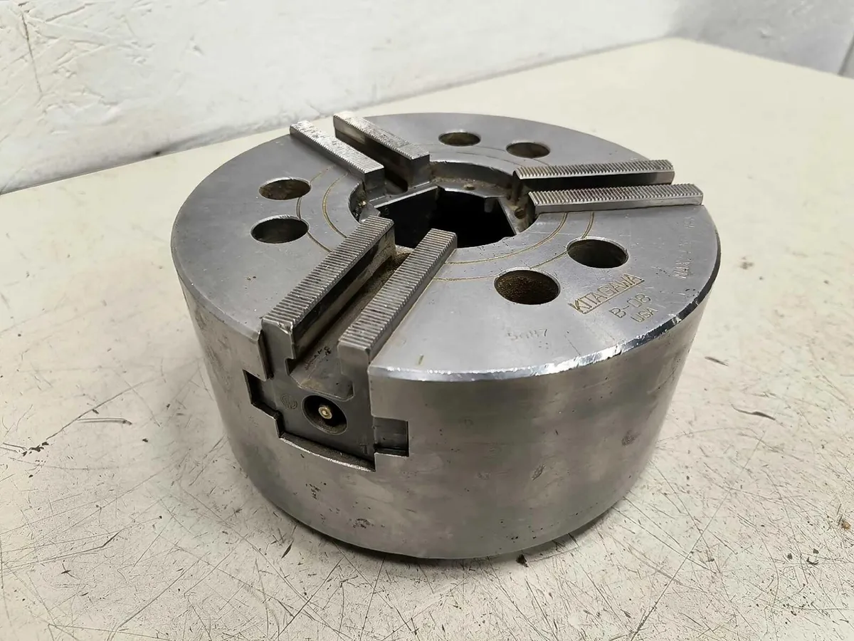 Kitagawa B-08 8" 3-Jaw Hydraulic Power Lathe Chuck CNC Kitagawa B-08 8" 3-Jaw Hydraulic Power Lathe Chuck CNC Click images to enlarge Description INV 7760 Fresh off a Mori Seiki CNC Lathe. It was making parts until it was replaced with a newer machine. Kitagawa 8" 3 Jaw Power Chuck B-08 Make: Kitagawa Model: B-08 Type: Power Chuck Diameter: 8" Jaws: 3 S/N: 5G87 Blue Rack Thanks for Looking! I have a regular business selling used equipment. This item is also for sale outside of eBay therefore my listing will often end without notice. If you're interested please bid or make an offer promptly to avoid losing out. Buy with confidence. There is a 14 day return privilege if the item arrives not as described or non-functional unless otherwise stated in the description. Buyer must notify us within 14 days of items arrival. This is not a satisfaction guarantee, I will only honor a return if we miss-listed the items or it does not function properly. I try to take REALLY good photos so you know what you are bidding on. We want you to feel comfortable buying from us. If you have any questions please let us know. Get images thatmake Supersized seem small.Showcase your items with Auctiva'sListing Templates!THE simple solution for eBay sellers.