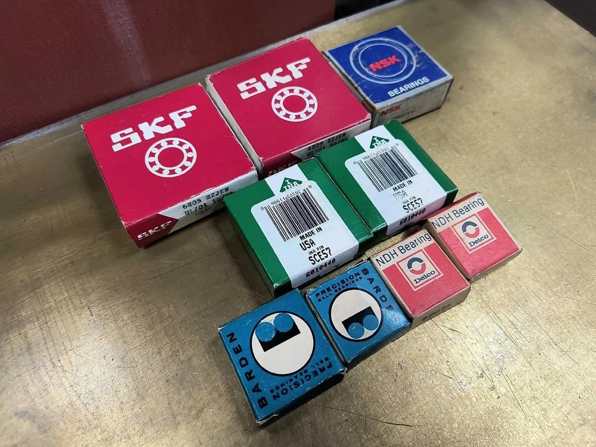 (9) Assorted Ball Bearings NSK, SKF, NDH, Barden, 6205 2ZJEM, SCE57, 77304, E13T (9) Assorted Ball Bearings NSK, SKF, NDH, Barden, 6205 2ZJEM, SCE57, 77304, E13T Click images to enlarge Description INV 7801 (9) Assorted Size and Type Ball Bearing to Include (2) New Old Stock Sealed NSK 6205 2ZJEM Deep Groove Ball Bearing OD 52mm, ID 25mm (2) New Old Stock INA SCE57 Needle Roller Bearings OD 12.5mm, ID 8.7mm (2) NDH 77304 Bearing OD 16mm, ID 4.15mm (1) NSK 6004UC3E Deep Groove Ball Bearing OD 42mm, ID 20mm (1) New Old Stock Barden E13T Ball Bearing OD 30mm, ID 13.15mm (1) New Old Stock Barden E8T Ball Bearing OD 24mm, ID 8mm Rotomat 5 Thanks for Looking! I have a regular business selling used equipment. This item is also for sale outside of eBay therefore my listing will often end without notice. If you're interested please bid or make an offer promptly to avoid losing out. Buy with confidence. There is a 14 day return privilege if the item arrives not as described or non-functional unless otherwise stated in the description. Buyer must notify us within 14 days of items arrival. This is not a satisfaction guarantee, I will only honor a return if we miss-listed the items or it does not function properly. I try to take REALLY good photos so you know what you are bidding on. We want you to feel comfortable buying from us. If you have any questions please let us know. Â Images sell!Get Supersized Images & Free Image HostingCreate your brand with Auctiva'sCustomizable Templates.Attention Sellers - Get TemplatesImage Hosting, Scheduling at Auctiva.com.