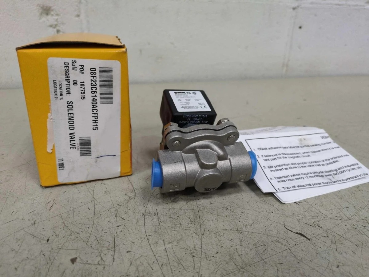 Parker 08F23C6140ACFPH15 2-Way Solenoid Valve 1/2 in. NPT, 240V, Norm. Closed, Parker 08F23C6140ACFPH15 2-Way Solenoid Valve 1/2 in. NPT, 240V, Norm. Closed, Click images to enlarge Description INV 7839 Unused Parker 08F23C6140ACFPH15 Gold Ring 2-Way Solenoid Valve Make: Parker Hannafin Model: 08F23C6140ACFPH15 Type: 2-Way Solenoid Valve Weight: 1 lbs 11 oz Dimensions: 3-1/4" x 3-3/8" x 4-1/2" Rack B Thanks for Looking! I have a regular business selling used equipment. This item is also for sale outside of eBay therefore my listing will often end without notice. If you're interested please bid or make an offer promptly to avoid losing out. Buy with confidence. There is a 14 day return privilege if the item arrives not as described or non-functional unless otherwise stated in the description. Buyer must notify us within 14 days of items arrival. This is not a satisfaction guarantee, I will only honor a return if we miss-listed the items or it does not function properly. I try to take REALLY good photos so you know what you are bidding on. We want you to feel comfortable buying from us. If you have any questions please let us know. Pictures sell!Auctiva offers Free Image Hosting and Editing.300+ Listing Templates!Auctiva gets you noticed!The complete eBay Selling Solution.