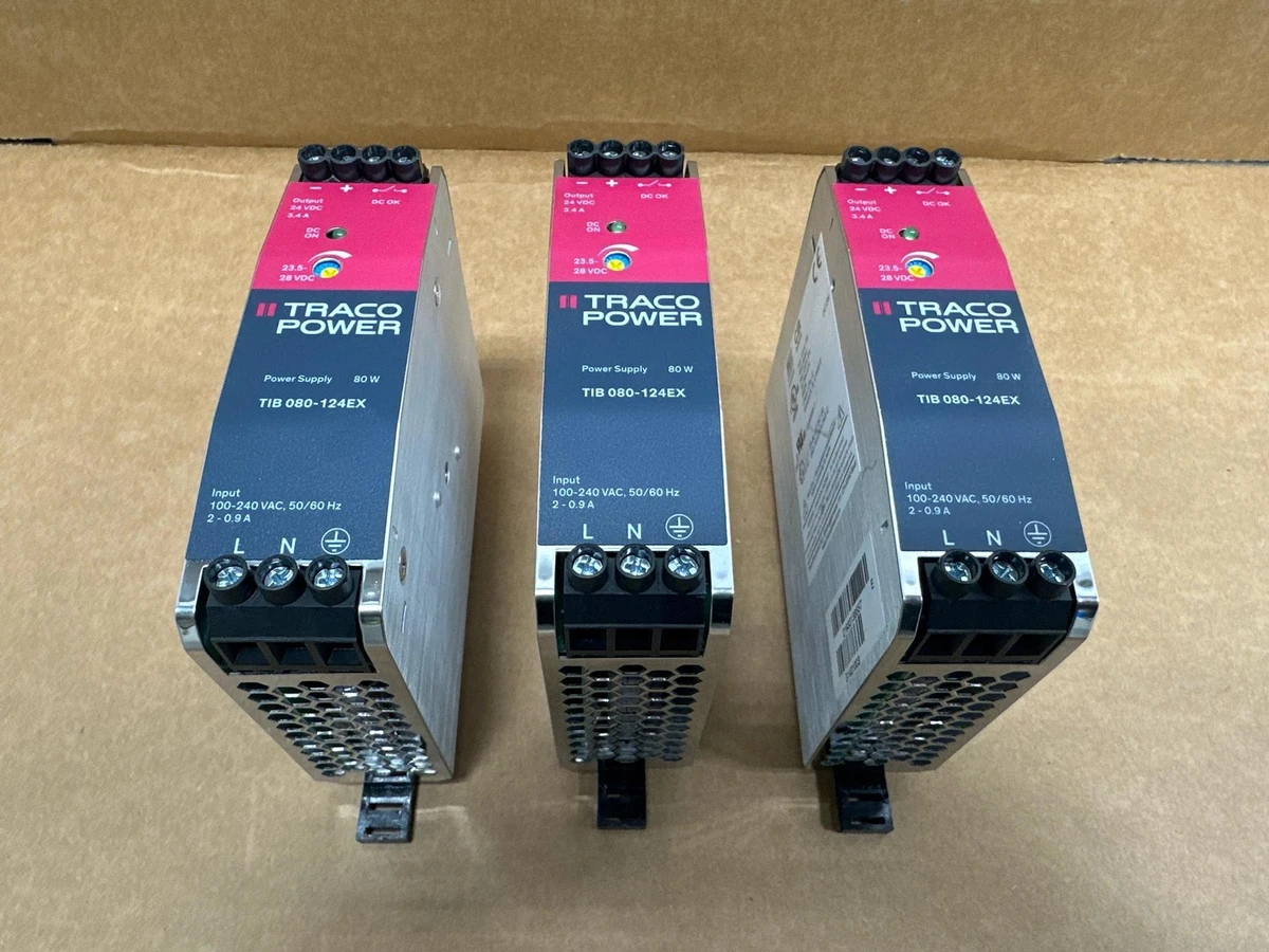 (3) Unused TRACO POWER TIB 080-124EX Power Supply Modules 80W (3) Unused TRACO POWER TIB 080-124EX Power Supply Modules 80W Click images to enlarge Description INV 8100 (3) Unused TRACO POWER TIB 080-124EX Power Supply Modules. You are getting all three for this price. Model: TIB 080-124EX 80W Input: 100-240 VAC 50/60Hz 2-0.9A CB Scheme, UL60950-1 H1 Roto Returns All refund requests must be initiated within 30 Days of Date of Receipt. Transactions outside of 30 Days are not eligible for refunds. We offer refunds for items which are Not as Described or Non Functional. Items must be received back for inspection prior to refund. Buyer is responsible for shipping both ways if the return is for a reason other than not as described or nonfunctional. Items sold as "New" or "New (Other)" or with a factory sealed box must be received back in original condition including all packaging with intact factory seals to qualify for a refund. Removing an item from manufacturer's packaging, or tampering with Factory Seals disqualifies the item from a refund. Shipping For most items under 120 pounds we offer FedEx shipping. Small items will often be sent USPS. We are happy to combine items when purchased on the same day. The final shipping costs will depend on the combined weight & dimension. We can generally ship overnight or expedited with FedEx or UPS. Our daily cutoff for overnight shipping is 1:00 CST. If an item is to be shipped via freight please contact us for a shipping quote. You can also arrange your own freight. Depending on the item we will charge $50-$150 to palletize and shrink wrap your item for shipping. Crating is an additional charge. Buyer responsible for sending us a BOL prior to loading if they are arranging shipping. International buyers are responsible for all import duties, taxes and charges. If an international package is returned the buyer is responsible for paying shipping a second time. Thanks for Looking! I have a regular business selling used equipment. This item is also for sale outside of eBay therefore my listing will often end without notice. If you're interested please bid or make an offer promptly to avoid losing out. Buy with confidence. There is a 14 day return privilege if the item arrives not as described or non-functional unless otherwise stated in the description. Buyer must notify us within 14 days of items arrival. This is not a satisfaction guarantee, I will only honor a return if we miss-listed the items or it does not function properly. I try to take REALLY good photos so you know what you are bidding on. We want you to feel comfortable buying from us. If you have any questions please let us know. Images sell!Get Supersized Images & Free Image HostingCreate your brand with Auctiva'sCustomizable Templates.Attention Sellers - Get TemplatesImage Hosting, Scheduling at Auctiva.com.