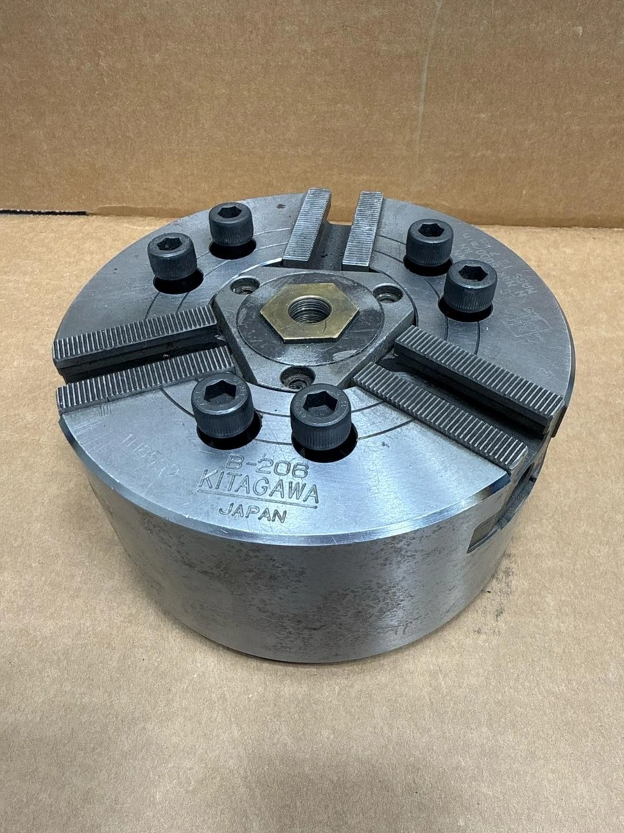KITAGAWA B-206 6" 3-Jaw CNC Hydraulic Power Lathe Chuck, A2-5 KITAGAWA B-206 6" 3-Jaw CNC Hydraulic Power Lathe Chuck, A2-5 Click images to enlarge Description INV 8164 Fresh from a closed clean CNC job shop. Machines were sold with collet chucks so the chucks were available and are now for sale. KITAGAWA B-206 CNC Power Lathe Chuck F Max: 22 kN ES Max: 57 kN N. Max 6000/min Mass: 13.7 kg Chuck Diameter: 6.654" (169mm) Chuck Thickness: 3" Number of Jaws: 3 Mount: A2-5 Thru Hole: 1.772" Jaw Stroke (Diameter): 0.217" Plunger Stroke: 0.472" Maximum Draw Bar Pull Force: 4,846 lbs. Maximum Gripping Force: 12,555 lbs. Maximum Speed: 6,000 RPM s/n: 1H8559 H2 Rotomat Returns All refund requests must be initiated within 30 Days of Date of Receipt. Transactions outside of 30 Days are not eligible for refunds. We offer refunds for items which are Not as Described or Non Functional. Items must be received back for inspection prior to refund. Buyer is responsible for shipping both ways if the return is for a reason other than not as described or nonfunctional. Items sold as "New" or "New (Other)" or with a factory sealed box must be received back in original condition including all packaging with intact factory seals to qualify for a refund. Removing an item from manufacturer's packaging, or tampering with Factory Seals disqualifies the item from a refund. Shipping For most items under 120 pounds we offer FedEx shipping. Small items will often be sent USPS. We are happy to combine items when purchased on the same day. The final shipping costs will depend on the combined weight & dimension. We can generally ship overnight or expedited with FedEx or UPS. Our daily cutoff for overnight shipping is 1:00 CST. If an item is to be shipped via freight please contact us for a shipping quote. You can also arrange your own freight. Depending on the item we will charge $50-$150 to palletize and shrink wrap your item for shipping. Crating is an additional charge. Buyer responsible for sending us a BOL prior to loading if they are arranging shipping. International buyers are responsible for all import duties, taxes and charges. If an international package is returned the buyer is responsible for paying shipping a second time. Thanks for Looking! I have a regular business selling used equipment. This item is also for sale outside of eBay therefore my listing will often end without notice. If you're interested please bid or make an offer promptly to avoid losing out. Buy with confidence. There is a 14 day return privilege if the item arrives not as described or non-functional unless otherwise stated in the description. Buyer must notify us within 14 days of items arrival. This is not a satisfaction guarantee, I will only honor a return if we miss-listed the items or it does not function properly. I try to take REALLY good photos so you know what you are bidding on. We want you to feel comfortable buying from us. If you have any questions please let us know. Get images thatmake Supersized seem small.Showcase your items with Auctiva'sListing Templates!THE simple solution for eBay sellers.