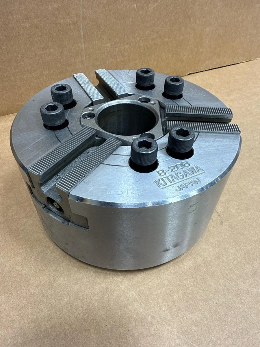 KITAGAWA B-206 6" 3-Jaw CNC Hydraulic Power Lathe Chuck, A2-5 KITAGAWA B-206 6" 3-Jaw CNC Hydraulic Power Lathe Chuck, A2-5 Click images to enlarge Description INV 8163 Fresh from a closed clean CNC job shop. Machines were sold with collet chucks so the chucks were available and are now for sale. KITAGAWA B-206 CNC Power Lathe Chuck F Max: 22 kN ES Max: 57 kN N. Max 6000/min Mass: 13.7 kg Chuck Diameter: 6.654" (169mm) Chuck Thickness: 3" Number of Jaws: 3 Mount: A2-5 Thru Hole: 1.772" Jaw Stroke (Diameter): 0.217" Plunger Stroke: 0.472" Maximum Draw Bar Pull Force: 4,846 lbs. Maximum Gripping Force: 12,555 lbs. Maximum Speed: 6,000 RPM s/n: 1F5142 H2 Rotomat Returns All refund requests must be initiated within 30 Days of Date of Receipt. Transactions outside of 30 Days are not eligible for refunds. We offer refunds for items which are Not as Described or Non Functional. Items must be received back for inspection prior to refund. Buyer is responsible for shipping both ways if the return is for a reason other than not as described or nonfunctional. Items sold as "New" or "New (Other)" or with a factory sealed box must be received back in original condition including all packaging with intact factory seals to qualify for a refund. Removing an item from manufacturer's packaging, or tampering with Factory Seals disqualifies the item from a refund. Shipping For most items under 120 pounds we offer FedEx shipping. Small items will often be sent USPS. We are happy to combine items when purchased on the same day. The final shipping costs will depend on the combined weight & dimension. We can generally ship overnight or expedited with FedEx or UPS. Our daily cutoff for overnight shipping is 1:00 CST. If an item is to be shipped via freight please contact us for a shipping quote. You can also arrange your own freight. Depending on the item we will charge $50-$150 to palletize and shrink wrap your item for shipping. Crating is an additional charge. Buyer responsible for sending us a BOL prior to loading if they are arranging shipping. International buyers are responsible for all import duties, taxes and charges. If an international package is returned the buyer is responsible for paying shipping a second time. Thanks for Looking! I have a regular business selling used equipment. This item is also for sale outside of eBay therefore my listing will often end without notice. If you're interested please bid or make an offer promptly to avoid losing out. Buy with confidence. There is a 14 day return privilege if the item arrives not as described or non-functional unless otherwise stated in the description. Buyer must notify us within 14 days of items arrival. This is not a satisfaction guarantee, I will only honor a return if we miss-listed the items or it does not function properly. I try to take REALLY good photos so you know what you are bidding on. We want you to feel comfortable buying from us. If you have any questions please let us know. Get images thatmake Supersized seem small.Showcase your items with Auctiva'sListing Templates!THE simple solution for eBay sellers.