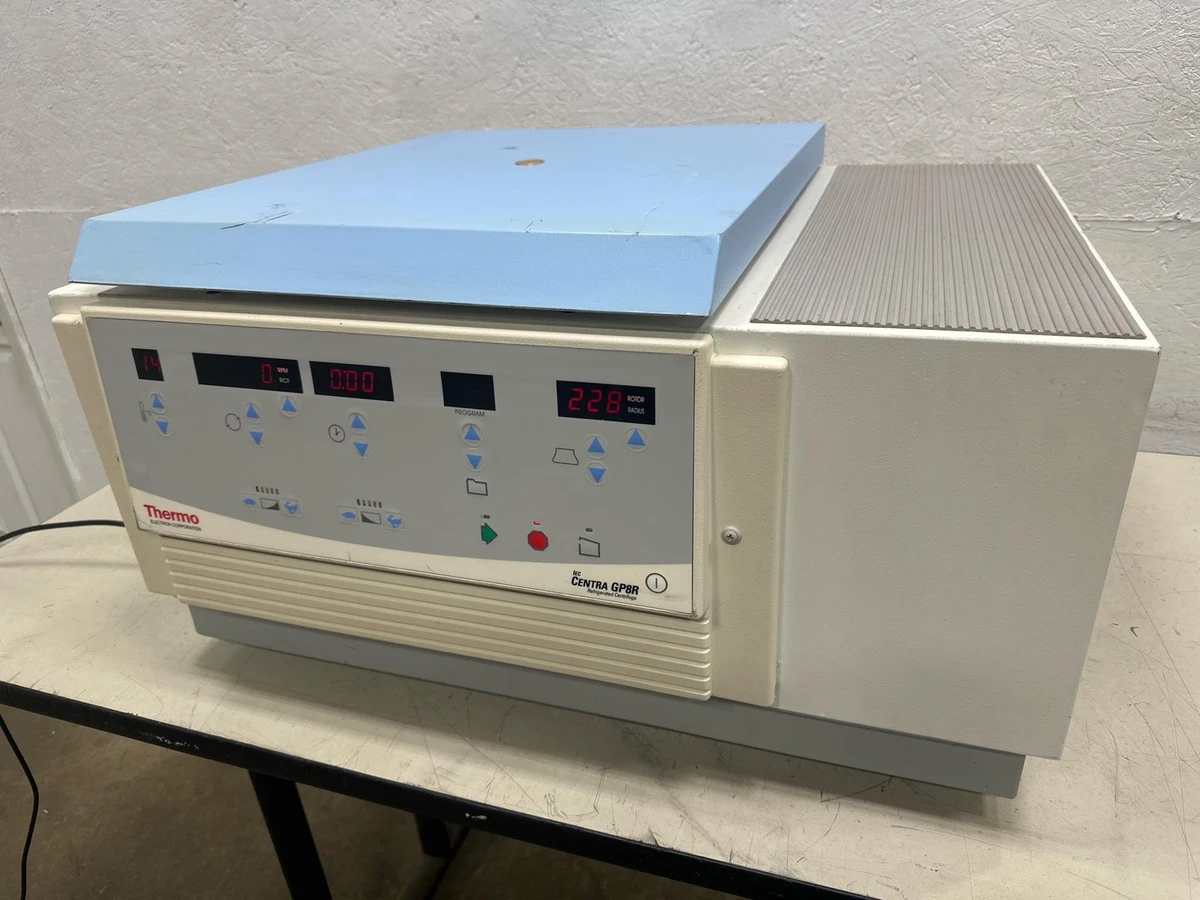 Thermo Electron CENTRA GP8R Tabletop Refrigerated Centrifuge 4k Rotor & Buckets Thermo Electron CENTRA GP8R Tabletop Refrigerated Centrifuge 4k Rotor & Buckets Click images to enlarge Description INV 1001558 Year: 2004 Make: Thermo Electron Corp Model: CENTRA GP8R Type: Tabletop Refrigerated Centrifuge Serial Number: 31221897 Includes: 4000 RPM Rotor & Buckets 120V 12 Amperes 60Hz Refrigerant: R-22 Charge: 7.5 oz High: 300 PSI Low: 150 PSI Pallet Warehouse Returns All refund requests must be initiated within 30 Days of Date of Receipt. Transactions outside of 30 Days are not eligible for refunds. We offer refunds for items which are Not as Described or Non Functional. Items must be received back for inspection prior to refund. Buyer is responsible for shipping both ways if the return is for a reason other than not as described or nonfunctional. Items sold as "New" or "New (Other)" or with a factory sealed box must be received back in original condition including all packaging with intact factory seals to qualify for a refund. Removing an item from manufacturer's packaging, or tampering with Factory Seals disqualifies the item from a refund. Shipping For most items under 120 pounds we offer FedEx shipping. Small items will often be sent USPS. We are happy to combine items when purchased on the same day. The final shipping costs will depend on the combined weight & dimension. We can generally ship overnight or expedited with FedEx or UPS. Our daily cutoff for overnight shipping is 1:00 CST. If an item is to be shipped via freight please contact us for a shipping quote. You can also arrange your own freight. Depending on the item we will charge $50-$150 to palletize and shrink wrap your item for shipping. Crating is an additional charge. Buyer responsible for sending us a BOL prior to loading if they are arranging shipping. International buyers are responsible for all import duties, taxes and charges. If an international package is returned the buyer is responsible for paying shipping a second time. Thanks for Looking! I have a regular business selling used equipment. This item is also for sale outside of eBay therefore my listing will often end without notice. If you're interested please bid or make an offer promptly to avoid losing out. Buy with confidence. There is a 14 day return privilege if the item arrives not as described or non-functional unless otherwise stated in the description. Buyer must notify us within 14 days of items arrival. This is not a satisfaction guarantee, I will only honor a return if we miss-listed the items or it does not function properly. I try to take REALLY good photos so you know what you are bidding on. We want you to feel comfortable buying from us. If you have any questions please let us know. Images sell!Get Supersized Images & Free Image HostingCreate your brand with Auctiva'sCustomizable Templates.Attention Sellers - Get TemplatesImage Hosting, Scheduling at Auctiva.com.