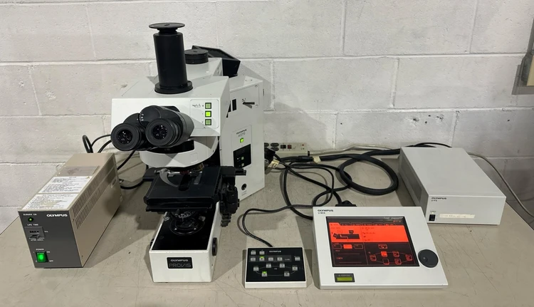 Olympus PROVIS AX70 Compound Fluorescent Microscope AX70TRF U-MCB U-PS U-HSTR ++ Olympus PROVIS AX70 Compound Fluorescent Microscope AX70TRF U-MCB U-PS U-HSTR ++ Click images to enlarge Description INV 1001211 Please do not pay until we can get you an accurate shipping quote. This will take a considerable amount of supplies and time to properly package for safe shipping. Olympus PROVIS AX70TRF Compound Fluorescent Microscope Serial No: 4F08162 Olympus U-MCB Control Box Serial No. 5A06228 Olympus U-PS Power Supply Serial No. 5A07156, 100-240V, 50/60Hz Olympus U-HSTR Motorized Handset Controller Serial No. 8K15005 Olympus BH2-RFL-T3 Power Supply Serial No. 4D3009 100W 100-120V, 2.8A, 50-60Hz Olympus U-MPH Quadnocular Ultrawide Erect Head (5) Olympus Lenses 4x,10x,20x,40x, 60x Eye Pieces: SWH10H/26.5 Returns All refund requests must be initiated within 30 Days of Date of Receipt. Transactions outside of 30 Days are not eligible for refunds. We offer refunds for items which are Not as Described or Non Functional. Items must be received back for inspection prior to refund. Buyer is responsible for shipping both ways if the return is for a reason other than not as described or nonfunctional. Items sold as "New" or "New (Other)" or with a factory sealed box must be received back in original condition including all packaging with intact factory seals to qualify for a refund. Removing an item from manufacturer's packaging, or tampering with Factory Seals disqualifies the item from a refund. Shipping For most items under 120 pounds we offer FedEx shipping. Small items will often be sent USPS. We are happy to combine items when purchased on the same day. The final shipping costs will depend on the combined weight & dimension. We can generally ship overnight or expedited with FedEx or UPS. Our daily cutoff for overnight shipping is 1:00 CST. If an item is to be shipped via freight please contact us for a shipping quote. You can also arrange your own freight. Depending on the item we will charge $50-$150 to palletize and shrink wrap your item for shipping. Crating is an additional charge. Buyer responsible for sending us a BOL prior to loading if they are arranging shipping. International buyers are responsible for all import duties, taxes and charges. If an international package is returned the buyer is responsible for paying shipping a second time. Thanks for Looking! I have a regular business selling used equipment. This item is also for sale outside of eBay therefore my listing will often end without notice. If you're interested please bid or make an offer promptly to avoid losing out. Buy with confidence. There is a 14 day return privilege if the item arrives not as described or non-functional unless otherwise stated in the description. Buyer must notify us within 14 days of items arrival. This is not a satisfaction guarantee, I will only honor a return if we miss-listed the items or it does not function properly. I try to take REALLY good photos so you know what you are bidding on. We want you to feel comfortable buying from us. If you have any questions please let us know. Get images thatmake Supersized seem small.Showcase your items with Auctiva'sListing Templates!THE simple solution for eBay sellers.