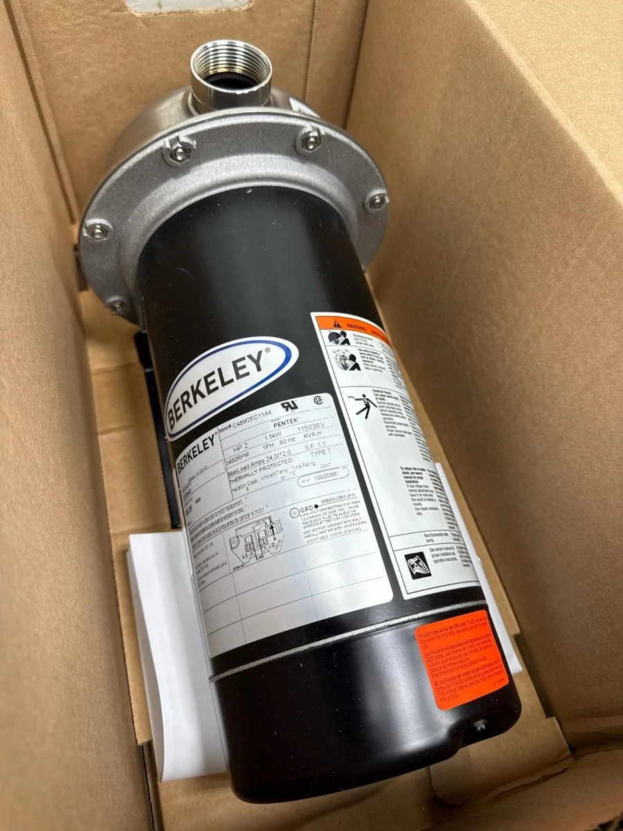 NEW PENTAIR Berkeley B78643 Centrifugal Pump, 90 GPM, 2HP, 230V, 1PH, ODP, 1-1/4 NEW PENTAIR Berkeley B78643 Centrifugal Pump, 90 GPM, 2HP, 230V, 1PH, ODP, 1-1/4 Click images to enlarge Description INV 8321 Straight from a major company's product purge due to design updates, this is your chance to score an unused in factory packaging item at a deep discount. This item ships quickly from Savage, MN 55378. Let us know if you'd like to use your own shipping account. NEW PENTAIR Berkeley B78643 Centrifugal Pump, 2HP, 230V, 1PH, ODP Model: B78643 HP: 2 3450 RPM 1 Phase, 60 Hz 115/230V Max Amps: 24 / 12 Motor#: C48M2EC11A4 Actual Weight: 36 Bushing Isolator: Natural Rubber Capacities (GPM): 90 Casing Material: 304 Stainless Steel Discharge NPT (Inches): 1-1/4" Gasket Material: Teflon Heads To (Feet): 120 HP: 2 Hz: 60 Impeller Material: N Maximum Operating Temperature: 185°F Model Number: SS11/4XN-2 Motor Enclosure Type: ODP - Open Drip Proof Motor Shaft Material: 316 Stainless Steel Phase: 1 Ph (Single Phase) Plug Material: 304 Stainless Steel Seal Plate Material: 304 Stainless Steel Shaft Seal Material: Buna Shaft Seal Type: Mechanical Seal Speed (RPM): 3450 Suction NPT (Inches): 1-1/2" Valve / Seat / O-Ring: Buna Container Returns All refund requests must be initiated within 30 Days of Date of Receipt. Transactions outside of 30 Days are not eligible for refunds. We offer refunds for items which are Not as Described or Non Functional. Items must be received back for inspection prior to refund. Buyer is responsible for shipping both ways if the return is for a reason other than not as described or nonfunctional. Items sold as "New" or "New (Other)" or with a factory sealed box must be received back in original condition including all packaging with intact factory seals to qualify for a refund. Removing an item from manufacturer's packaging, or tampering with Factory Seals disqualifies the item from a refund. Shipping For most items under 120 pounds we offer FedEx shipping. Small items will often be sent USPS. We are happy to combine items when purchased on the same day. The final shipping costs will depend on the combined weight & dimension. We can generally ship overnight or expedited with FedEx or UPS. Our daily cutoff for overnight shipping is 1:00 CST. If an item is to be shipped via freight please contact us for a shipping quote. You can also arrange your own freight. Depending on the item we will charge $50-$150 to palletize and shrink wrap your item for shipping. Crating is an additional charge. Buyer responsible for sending us a BOL prior to loading if they are arranging shipping. International buyers are responsible for all import duties, taxes and charges. If an international package is returned the buyer is responsible for paying shipping a second time. Thanks for Looking! I have a regular business selling used equipment. This item is also for sale outside of eBay therefore my listing will often end without notice. If you're interested please bid or make an offer promptly to avoid losing out. Buy with confidence. There is a 14 day return privilege if the item arrives not as described or non-functional unless otherwise stated in the description. Buyer must notify us within 14 days of items arrival. This is not a satisfaction guarantee, I will only honor a return if we miss-listed the items or it does not function properly. I try to take REALLY good photos so you know what you are bidding on. We want you to feel comfortable buying from us. If you have any questions please let us know. Images sell!Get Supersized Images & Free Image HostingCreate your brand with Auctiva'sCustomizable Templates.Attention Sellers - Get TemplatesImage Hosting, Scheduling at Auctiva.com.