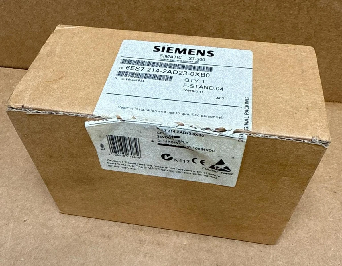 NEW IN BOX SIEMENS SIMATIC S7-200 Smart PCU 224, PLC, 1P 6ES7 214-1AD21-0XB0 NEW IN BOX SIEMENS SIMATIC S7-200 Smart PCU 224, PLC, 1P 6ES7 214-1AD21-0XB0 Click images to enlarge Description INV 8497 NOS SIEMENS SIMATIC S7-200 Smart PCU 224, PLC Model: 1P 6ES7 214-1AD21-0XB0 S J9P1184451 E-Stand: 2.0 s/n: C-V6G24634 H7 Rotomat Returns All refund requests must be initiated within 30 Days of Date of Receipt. Transactions outside of 30 Days are not eligible for refunds. We offer refunds for items which are Not as Described or Non Functional. Items must be received back for inspection prior to refund. Buyer is responsible for shipping both ways if the return is for a reason other than not as described or nonfunctional. Items sold as "New" or "New (Other)" or with a factory sealed box must be received back in original condition including all packaging with intact factory seals to qualify for a refund. Removing an item from manufacturer's packaging, or tampering with Factory Seals disqualifies the item from a refund. Shipping For most items under 120 pounds we offer FedEx shipping. Small items will often be sent USPS. We are happy to combine items when purchased on the same day. The final shipping costs will depend on the combined weight & dimension. We can generally ship overnight or expedited with FedEx or UPS. Our daily cutoff for overnight shipping is 1:00 CST. If an item is to be shipped via freight please contact us for a shipping quote. You can also arrange your own freight. Depending on the item we will charge $50-$150 to palletize and shrink wrap your item for shipping. Crating is an additional charge. Buyer responsible for sending us a BOL prior to loading if they are arranging shipping. International buyers are responsible for all import duties, taxes and charges. If an international package is returned the buyer is responsible for paying shipping a second time. Thanks for Looking! I have a regular business selling used equipment. This item is also for sale outside of eBay therefore my listing will often end without notice. If you're interested please bid or make an offer promptly to avoid losing out. Buy with confidence. There is a 14 day return privilege if the item arrives not as described or non-functional unless otherwise stated in the description. Buyer must notify us within 14 days of items arrival. This is not a satisfaction guarantee, I will only honor a return if we miss-listed the items or it does not function properly. I try to take REALLY good photos so you know what you are bidding on. We want you to feel comfortable buying from us. If you have any questions please let us know. Get images thatmake Supersized seem small.Showcase your items with Auctiva'sListing Templates!THE simple solution for eBay sellers.