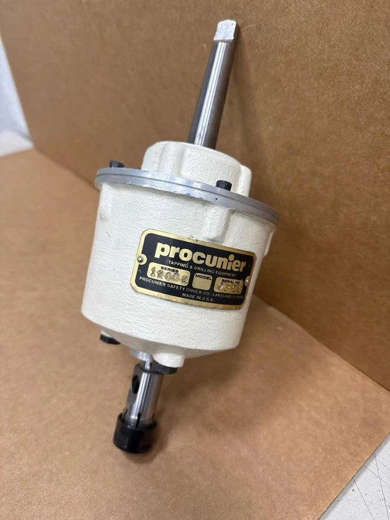 Procunier 12002 Tapping Head, 5/16" M4 Mild Steel, M12 Aluminum, 2MT Shank Procunier 12002 Tapping Head, 5/16" M4 Mild Steel, M12 Aluminum, 2MT Shank Click images to enlarge Description INV 8692 Procunier 12002 Tapping & Drilling Head Attachment Size: 5/16" Shank: MT2 Series: 12002 s/n: 0824 Shank Type: Taper Taper Size: 2MT Minimum Tap Capacity (Inch): #6 Minimum Tap Capacity (mm): M4 Maximum Aluminum Tap Capacity (mm): M12 H3 Roto Returns All refund requests must be initiated within 30 Days of Date of Receipt. Transactions outside of 30 Days are not eligible for refunds. We offer refunds for items which are Not as Described or Non Functional. Items must be received back for inspection prior to refund. Buyer is responsible for shipping both ways if the return is for a reason other than not as described or nonfunctional. Items sold as "New" or "New (Other)" or with a factory sealed box must be received back in original condition including all packaging with intact factory seals to qualify for a refund. Removing an item from manufacturer's packaging, or tampering with Factory Seals disqualifies the item from a refund. Shipping For most items under 120 pounds we offer FedEx shipping. Small items will often be sent USPS. We are happy to combine items when purchased on the same day. The final shipping costs will depend on the combined weight & dimension. We can generally ship overnight or expedited with FedEx or UPS. Our daily cutoff for overnight shipping is 1:00 CST. If an item is to be shipped via freight please contact us for a shipping quote. You can also arrange your own freight. Depending on the item we will charge $50-$150 to palletize and shrink wrap your item for shipping. Crating is an additional charge. Buyer responsible for sending us a BOL prior to loading if they are arranging shipping. International buyers are responsible for all import duties, taxes and charges. If an international package is returned the buyer is responsible for paying shipping a second time. Thanks for Looking! I have a regular business selling used equipment. This item is also for sale outside of eBay therefore my listing will often end without notice. If you're interested please bid or make an offer promptly to avoid losing out. Buy with confidence. There is a 14 day return privilege if the item arrives not as described or non-functional unless otherwise stated in the description. Buyer must notify us within 14 days of items arrival. This is not a satisfaction guarantee, I will only honor a return if we miss-listed the items or it does not function properly. I try to take REALLY good photos so you know what you are bidding on. We want you to feel comfortable buying from us. If you have any questions please let us know. Pictures sell!Auctiva offers Free Image Hosting and Editing.300+ Listing Templates!Auctiva gets you noticed!The complete eBay Selling Solution.