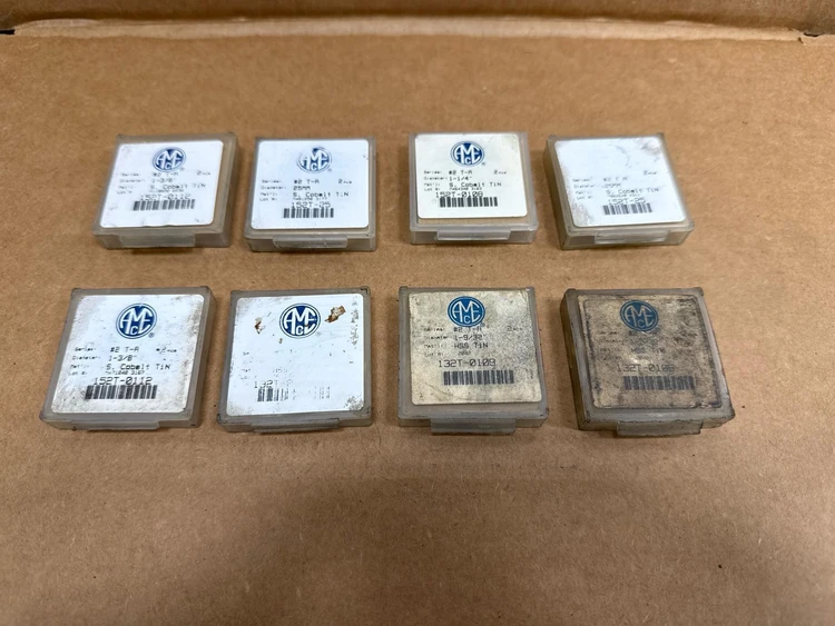 (8) New Boxes (qty 16) AMEC Allied T-A Inserts #2, Cobalt & HSS TiN 152T 132T (8) New Boxes (qty 16) AMEC Allied T-A Inserts #2, Cobalt & HSS TiN 152T 132T Click images to enlarge Description INV 8702 (8) New Boxes Allied Machine & Engineering Series #2, T-A Inserts Qty-2, #2, 152T-0112, 1-3/8", S. Cobalt TiN Qty-2, #2, 152T-0112, 1-3/8", S. Cobalt TiN Qty-2, #2, 152T-25, 25mm, S. Cobalt TiN Qty-2, #2, 152T-25, 25mm, S. Cobalt TiN Qty-2, #2, 152T-0108, 1-1/4", S. Cobalt TiN Qty-2, #2, 132T-0109, 1-9/32", HSS TiN Qty-2, #2, 132T-0104, 1-1/8", HSS TiN Qty-2, #2, 132T-0109, 1-9/32", HSS TiN H5 Roto Returns All refund requests must be initiated within 30 Days of Date of Receipt. Transactions outside of 30 Days are not eligible for refunds. We offer refunds for items which are Not as Described or Non Functional. Items must be received back for inspection prior to refund. Buyer is responsible for shipping both ways if the return is for a reason other than not as described or nonfunctional. Items sold as "New" or "New (Other)" or with a factory sealed box must be received back in original condition including all packaging with intact factory seals to qualify for a refund. Removing an item from manufacturer's packaging, or tampering with Factory Seals disqualifies the item from a refund. Shipping For most items under 120 pounds we offer FedEx shipping. Small items will often be sent USPS. We are happy to combine items when purchased on the same day. The final shipping costs will depend on the combined weight & dimension. We can generally ship overnight or expedited with FedEx or UPS. Our daily cutoff for overnight shipping is 1:00 CST. If an item is to be shipped via freight please contact us for a shipping quote. You can also arrange your own freight. Depending on the item we will charge $50-$150 to palletize and shrink wrap your item for shipping. Crating is an additional charge. Buyer responsible for sending us a BOL prior to loading if they are arranging shipping. International buyers are responsible for all import duties, taxes and charges. If an international package is returned the buyer is responsible for paying shipping a second time. Thanks for Looking! I have a regular business selling used equipment. This item is also for sale outside of eBay therefore my listing will often end without notice. If you're interested please bid or make an offer promptly to avoid losing out. Buy with confidence. There is a 14 day return privilege if the item arrives not as described or non-functional unless otherwise stated in the description. Buyer must notify us within 14 days of items arrival. This is not a satisfaction guarantee, I will only honor a return if we miss-listed the items or it does not function properly. I try to take REALLY good photos so you know what you are bidding on. We want you to feel comfortable buying from us. If you have any questions please let us know. Get images thatmake Supersized seem small.Showcase your items with Auctiva'sListing Templates!THE simple solution for eBay sellers.